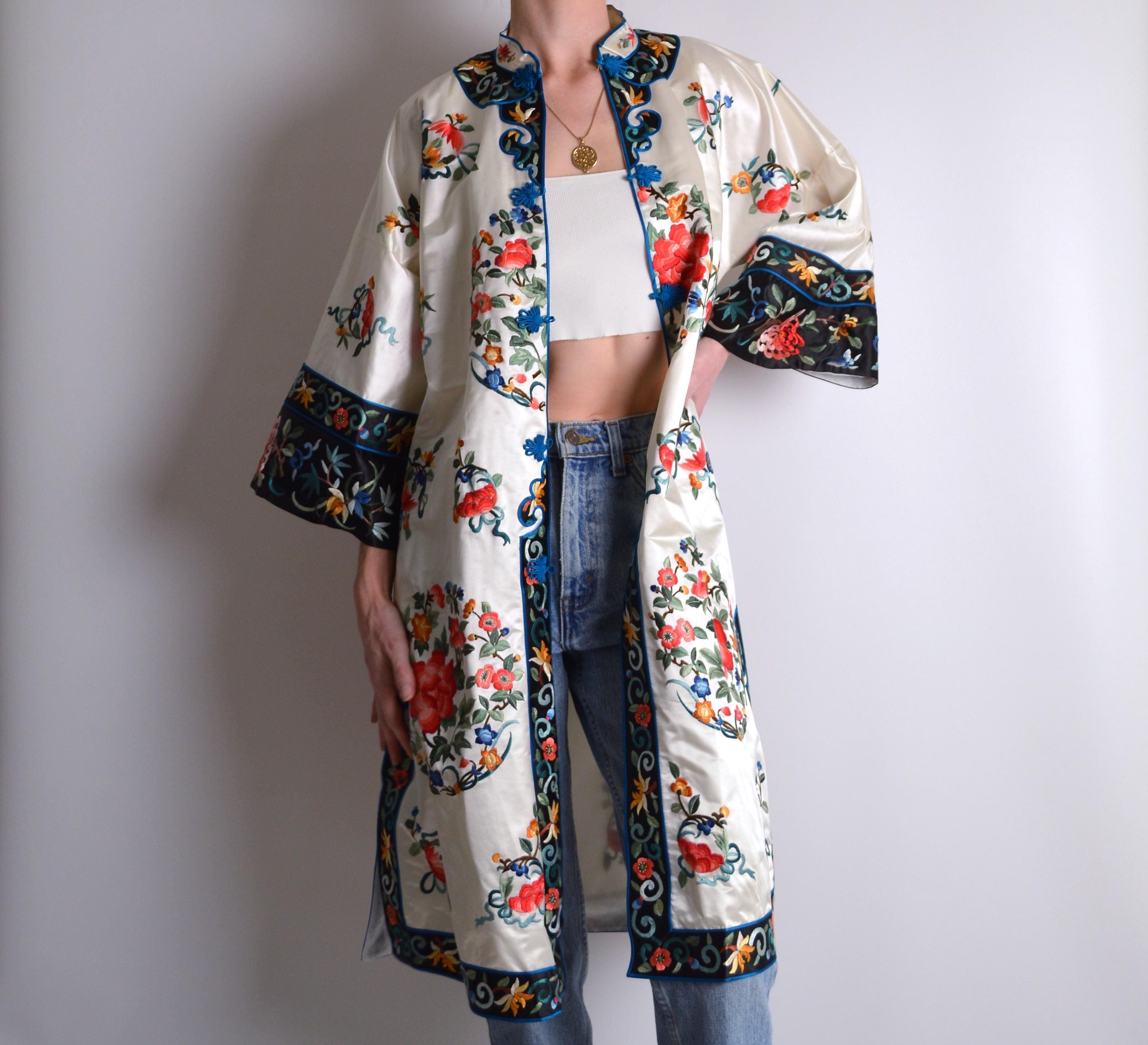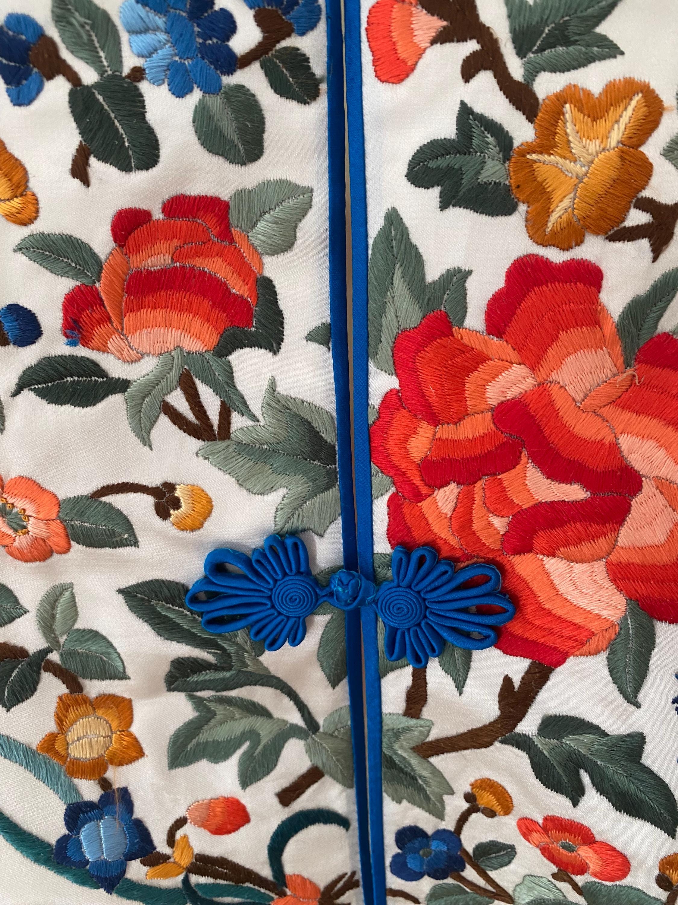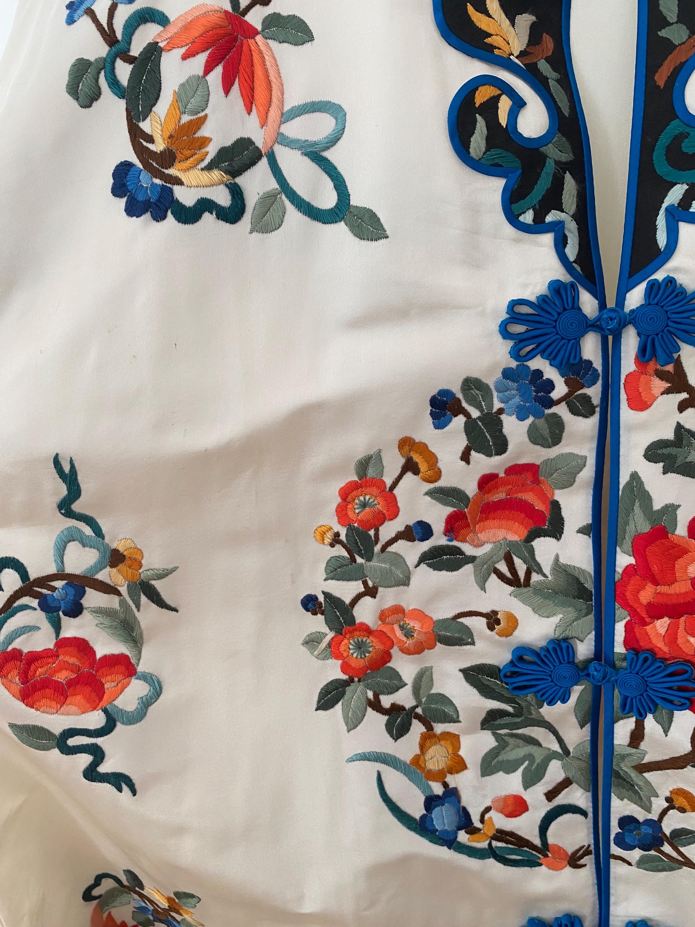 Absolutely stunning vintage embroidered robe. Loop buttons and Mandarin collar. Fully lined, lightweight. So gorgeous!