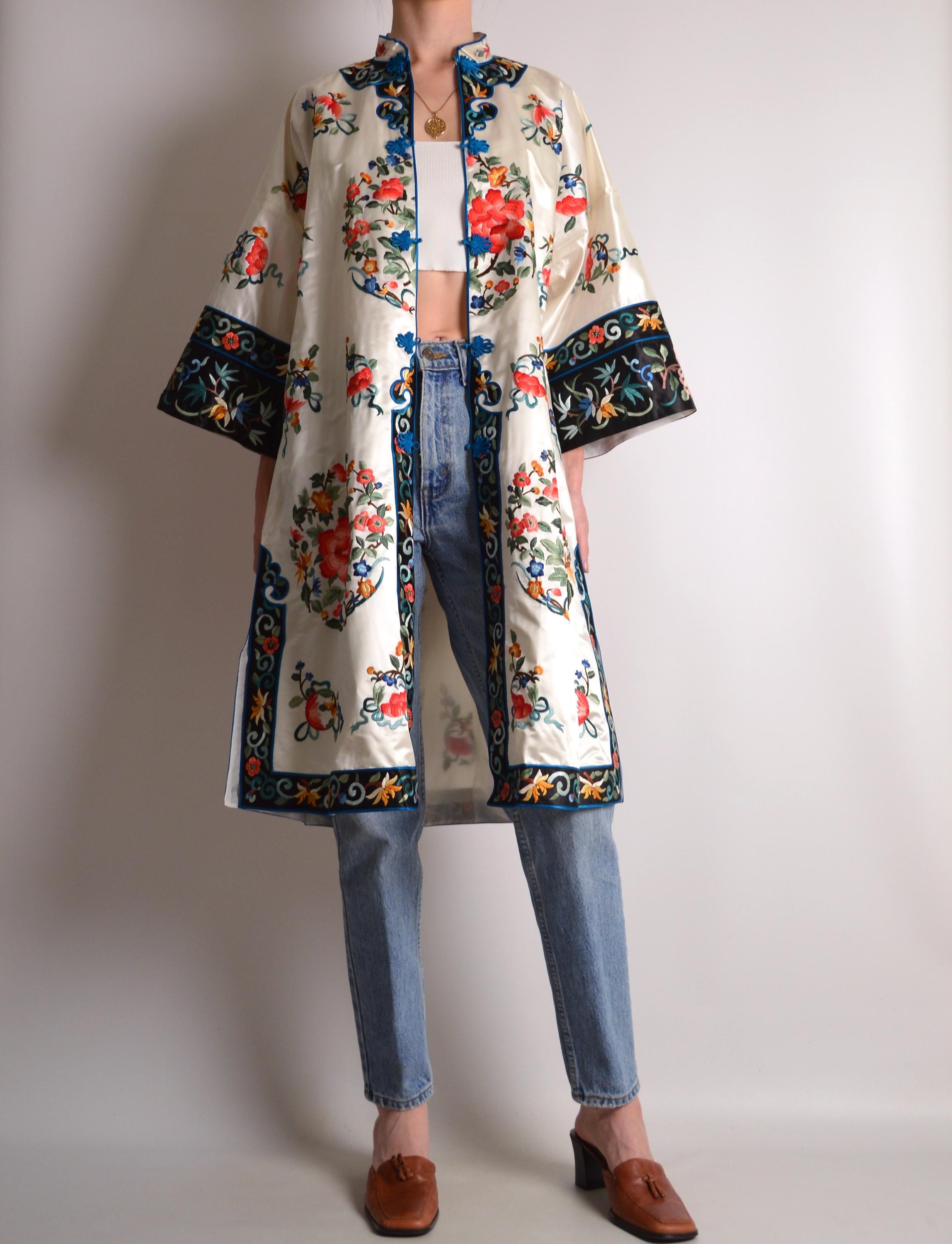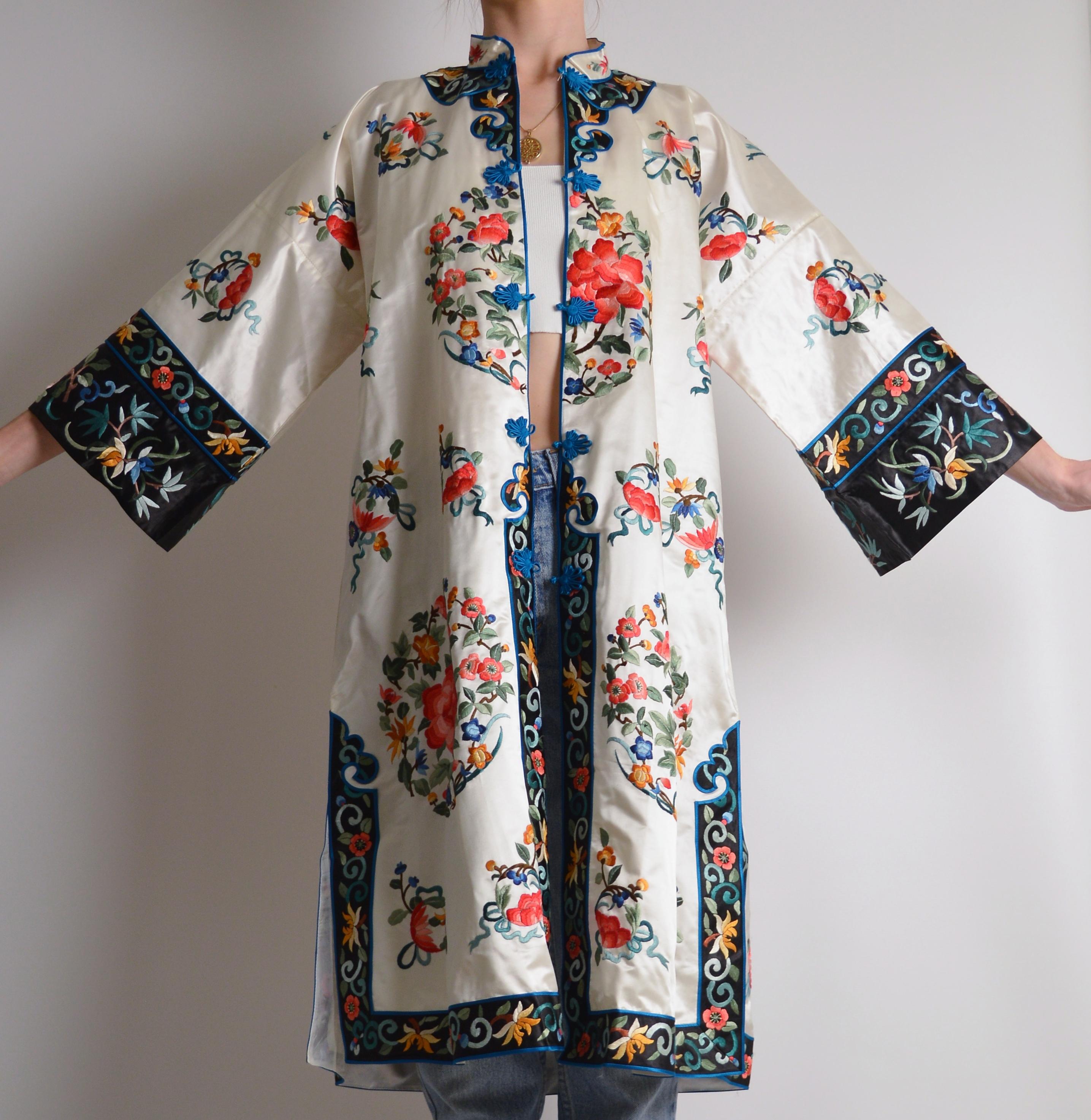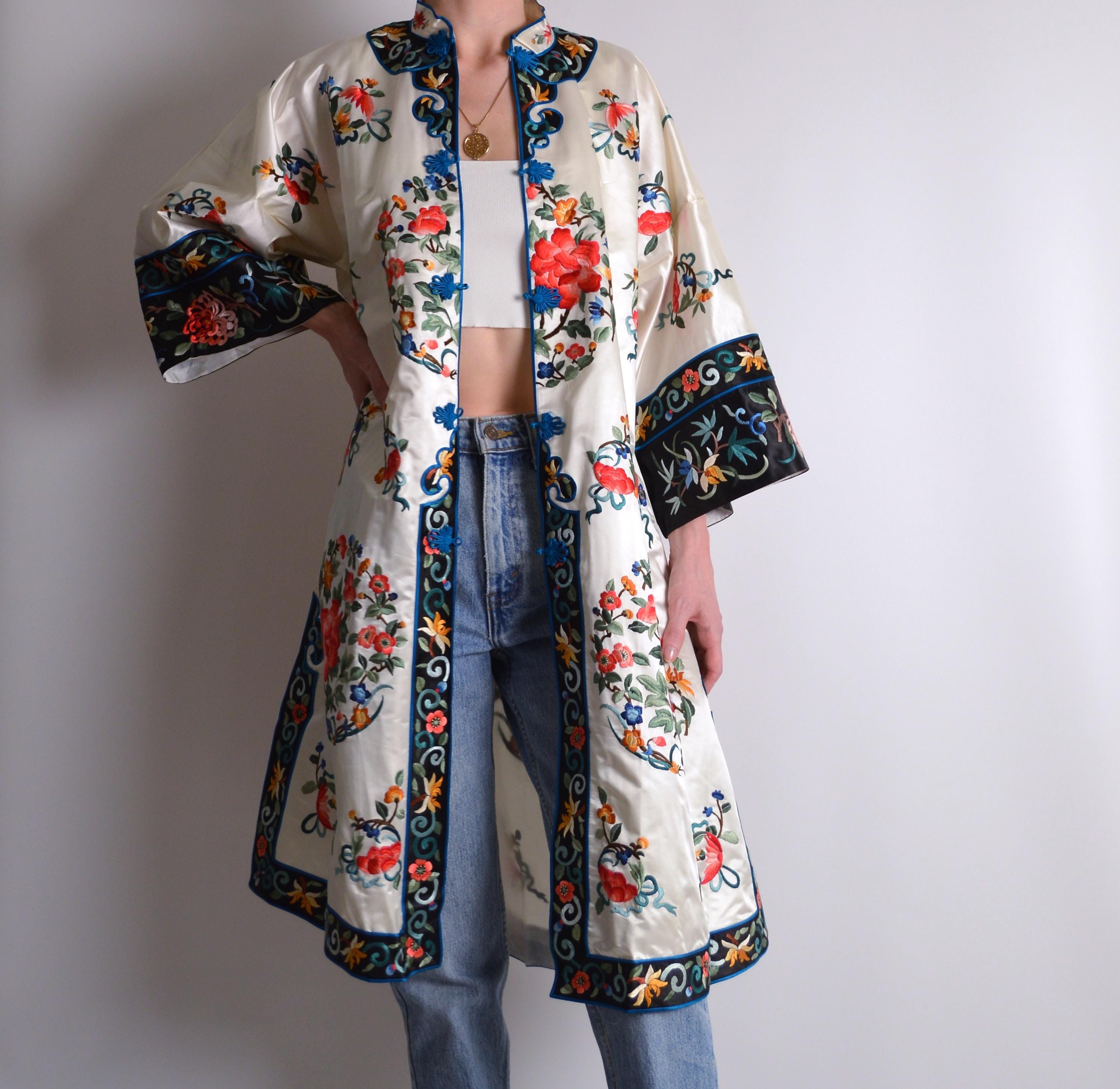 Absolutely stunning vintage embroidered robe. Loop buttons and Mandarin collar. Fully lined, lightweight. So gorgeous!