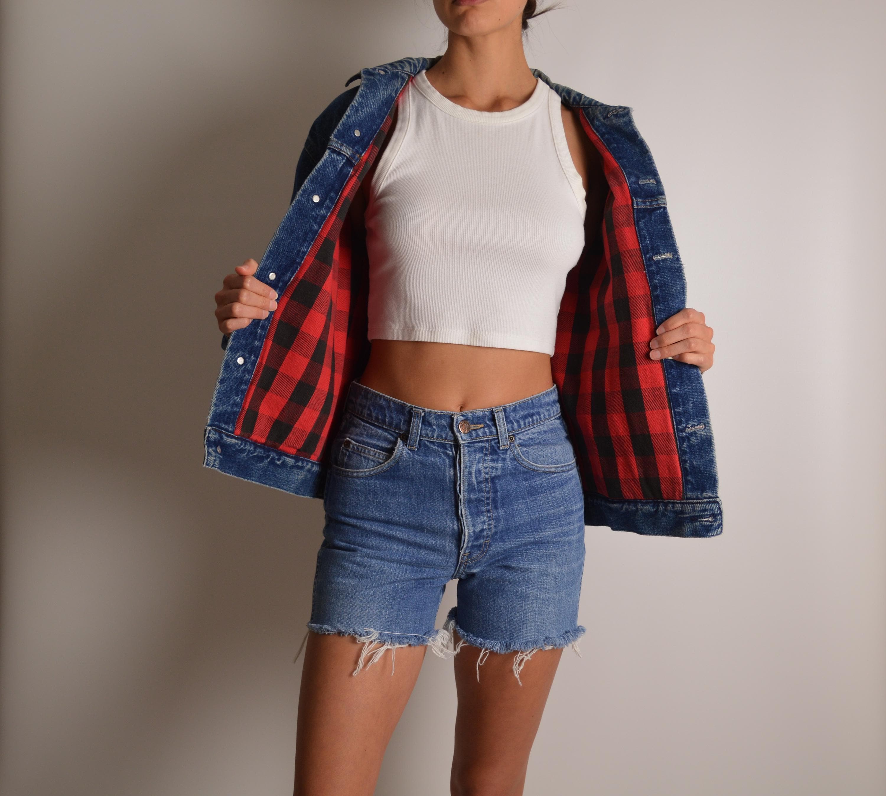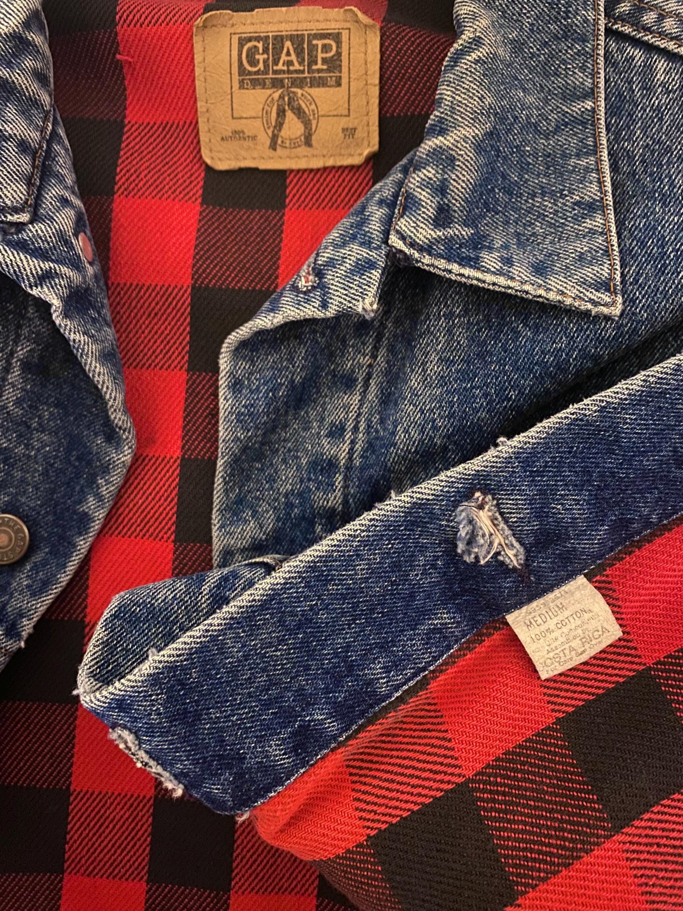 Ideal vintage Gap button-up jean jacket with buffalo plaid flannel lining. Has chest and hand pockets. Nice and warm for a denim jacket. Boyfriend fit, perfect over everything