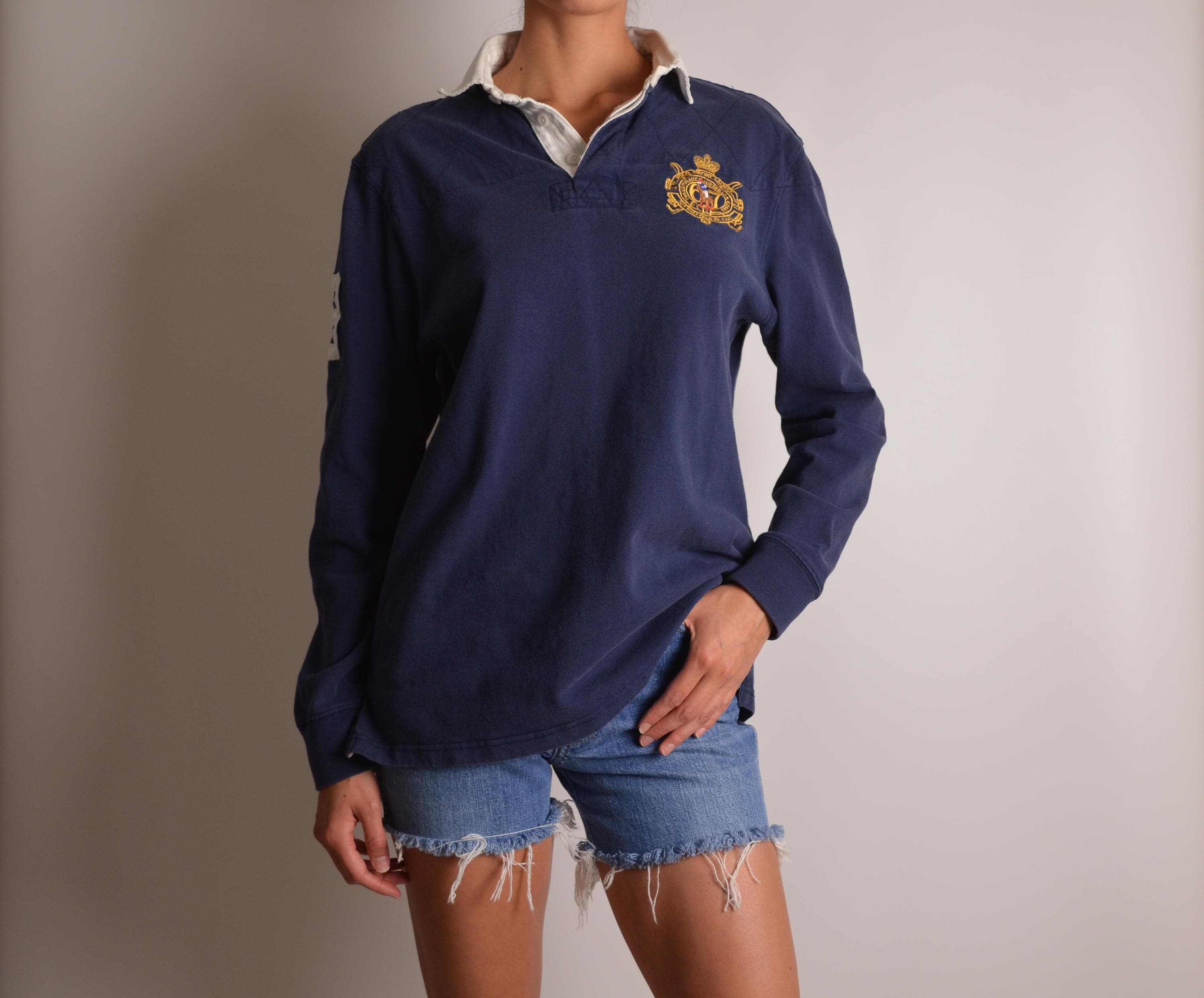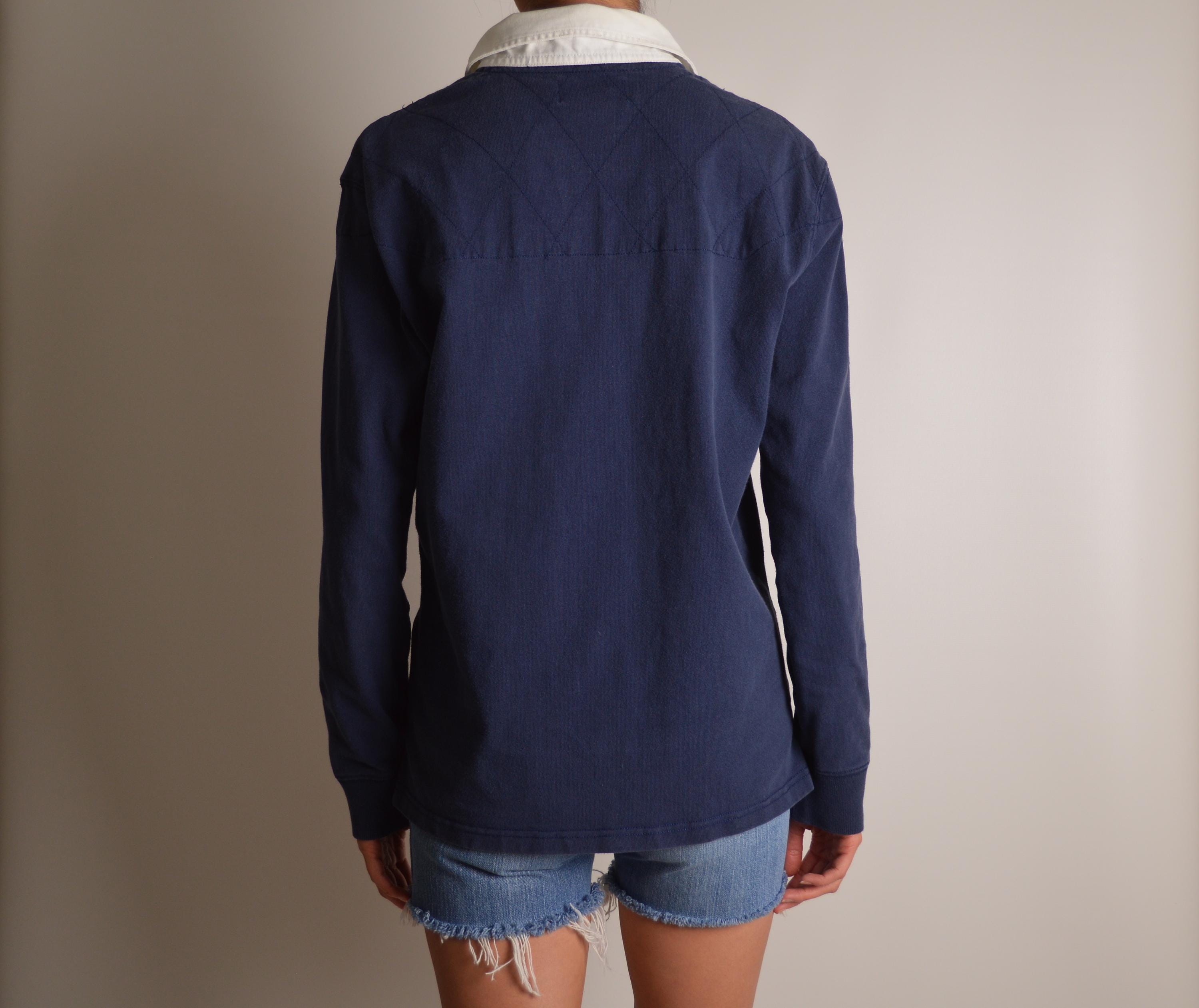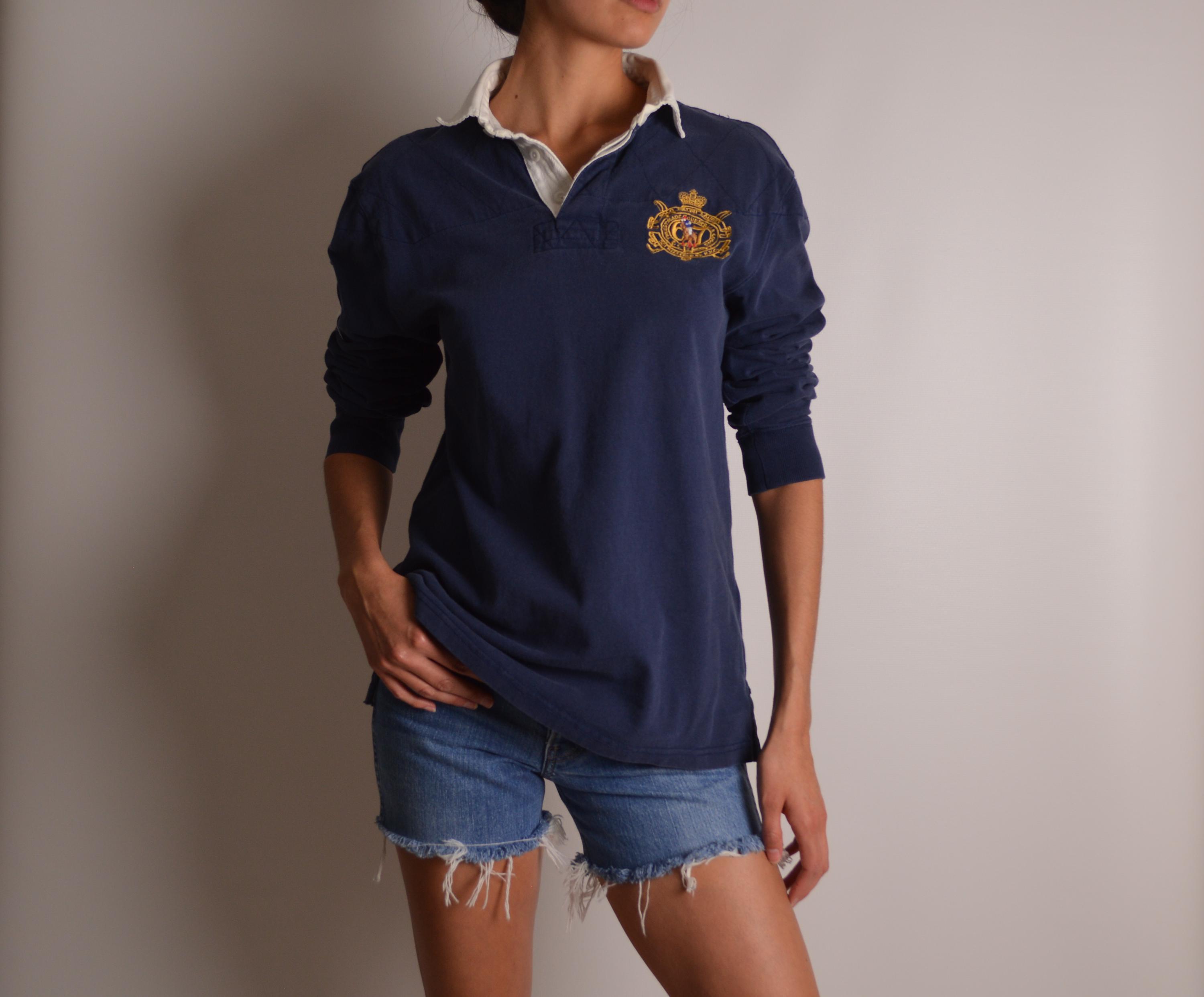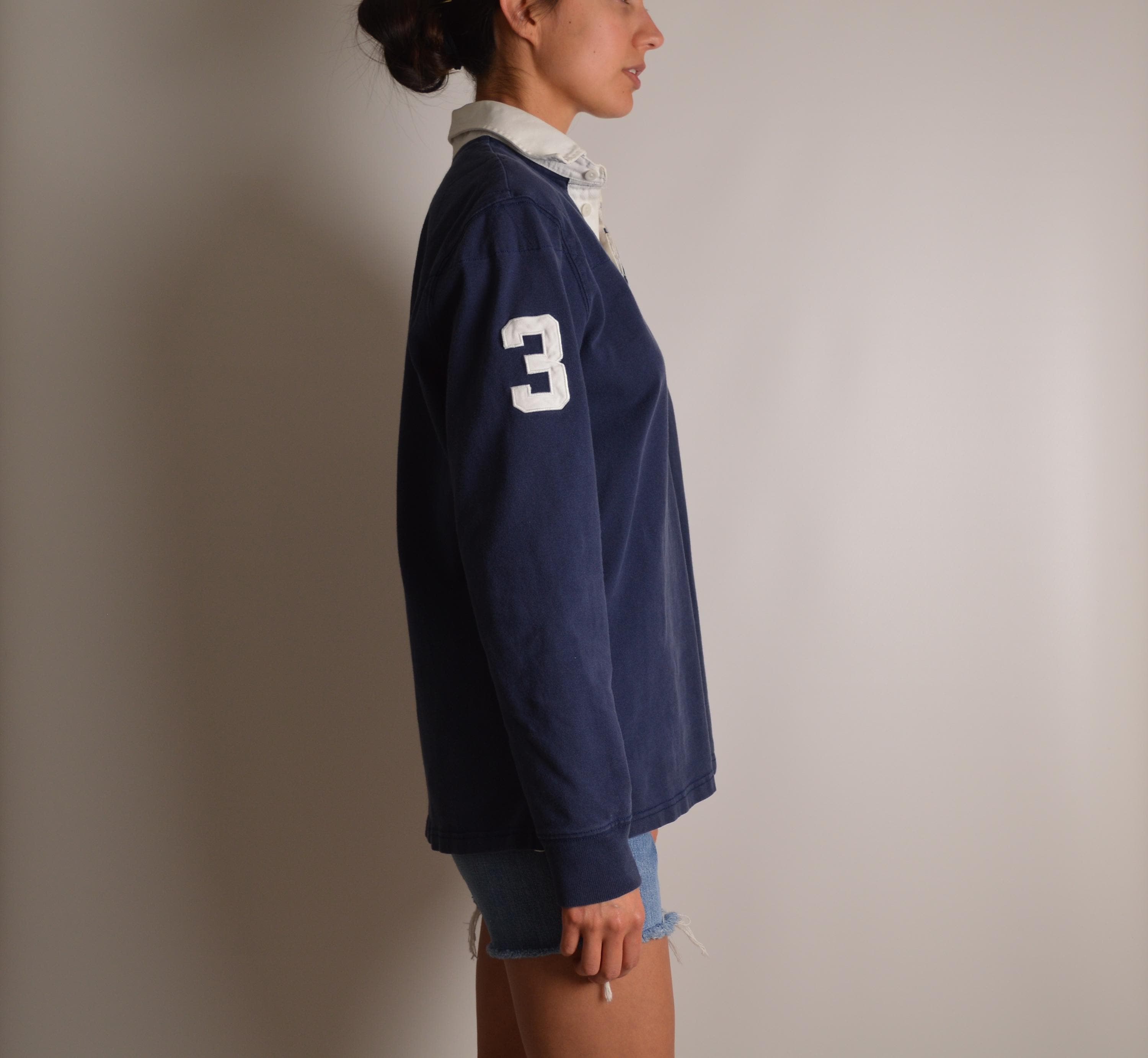 Amazing vintage Polo by Ralph Lauren 100% cotton henley. Faded navy blue with the iconic embroidered polo crest. Perfectly worn-in look and preppy, old money vibe