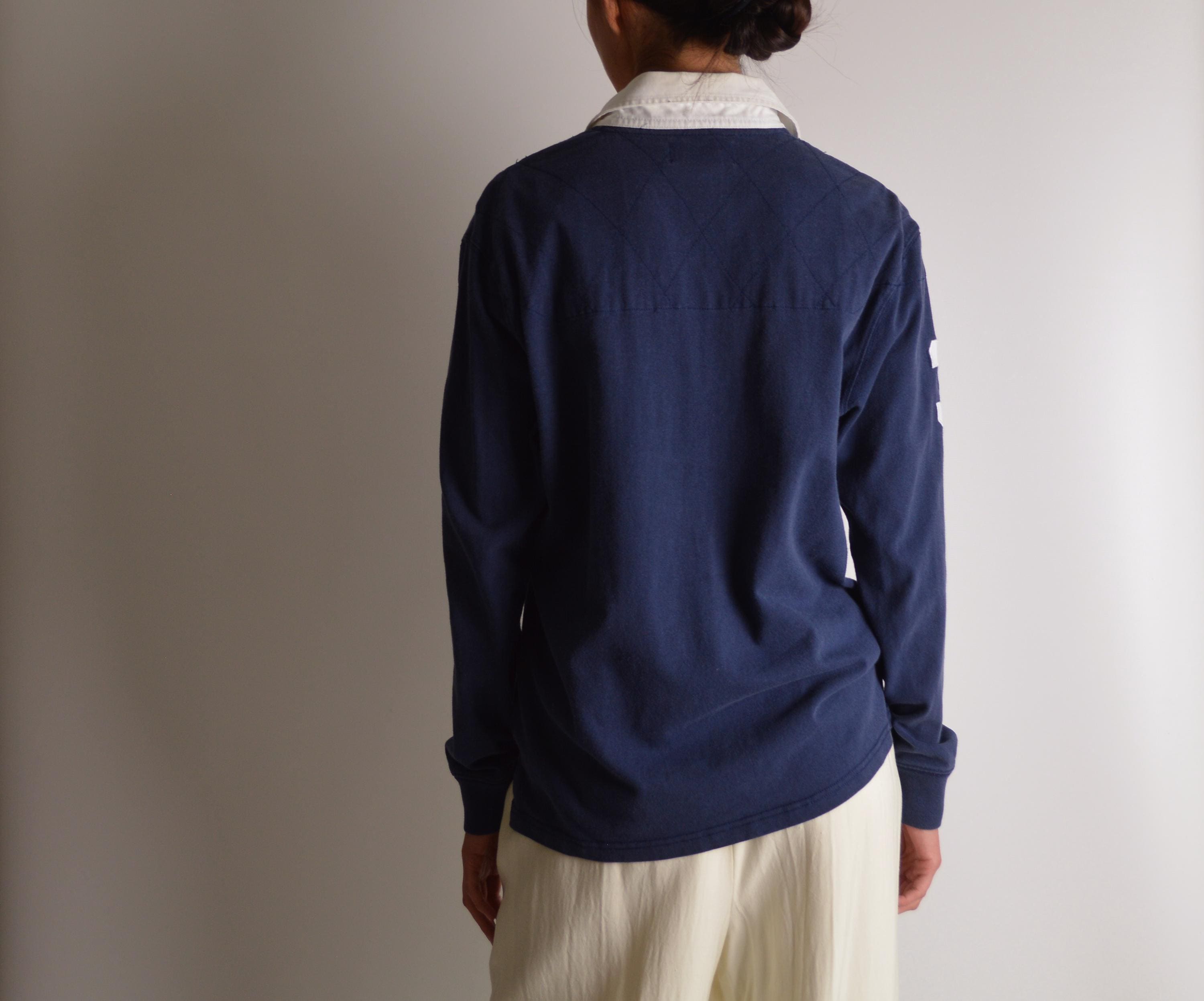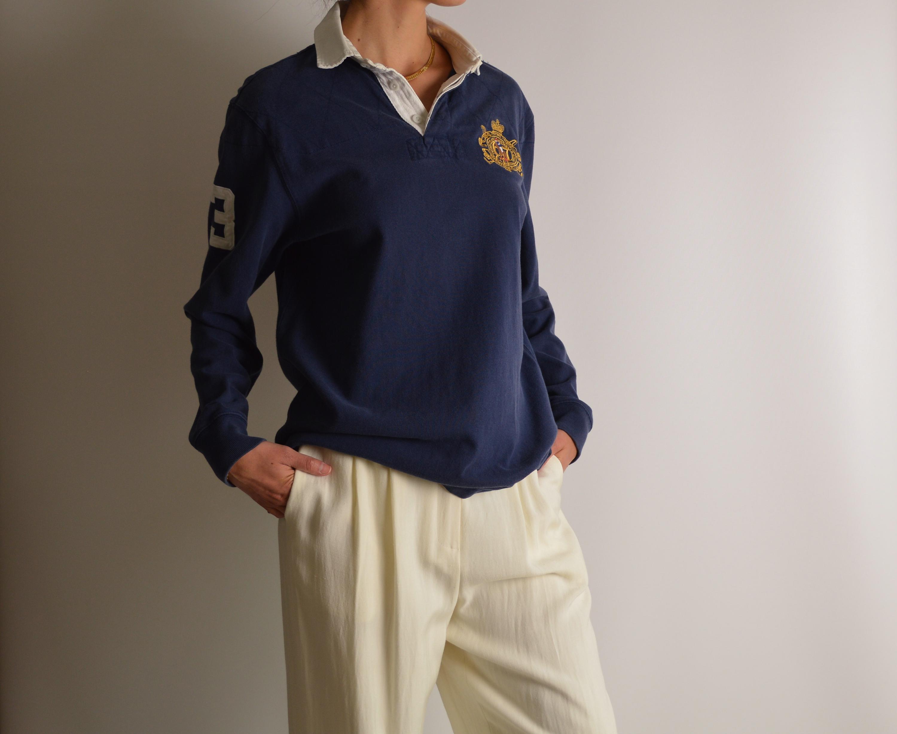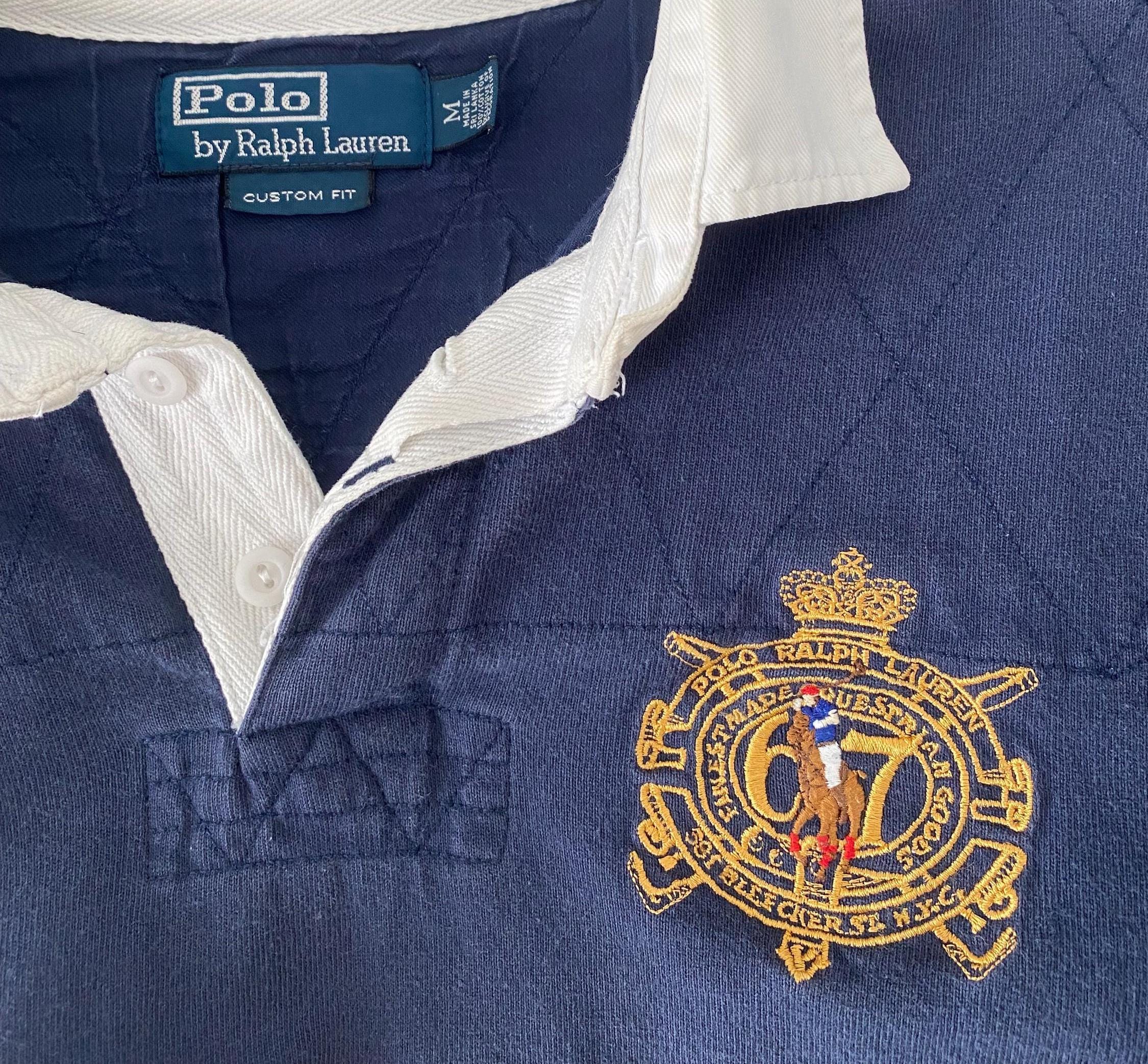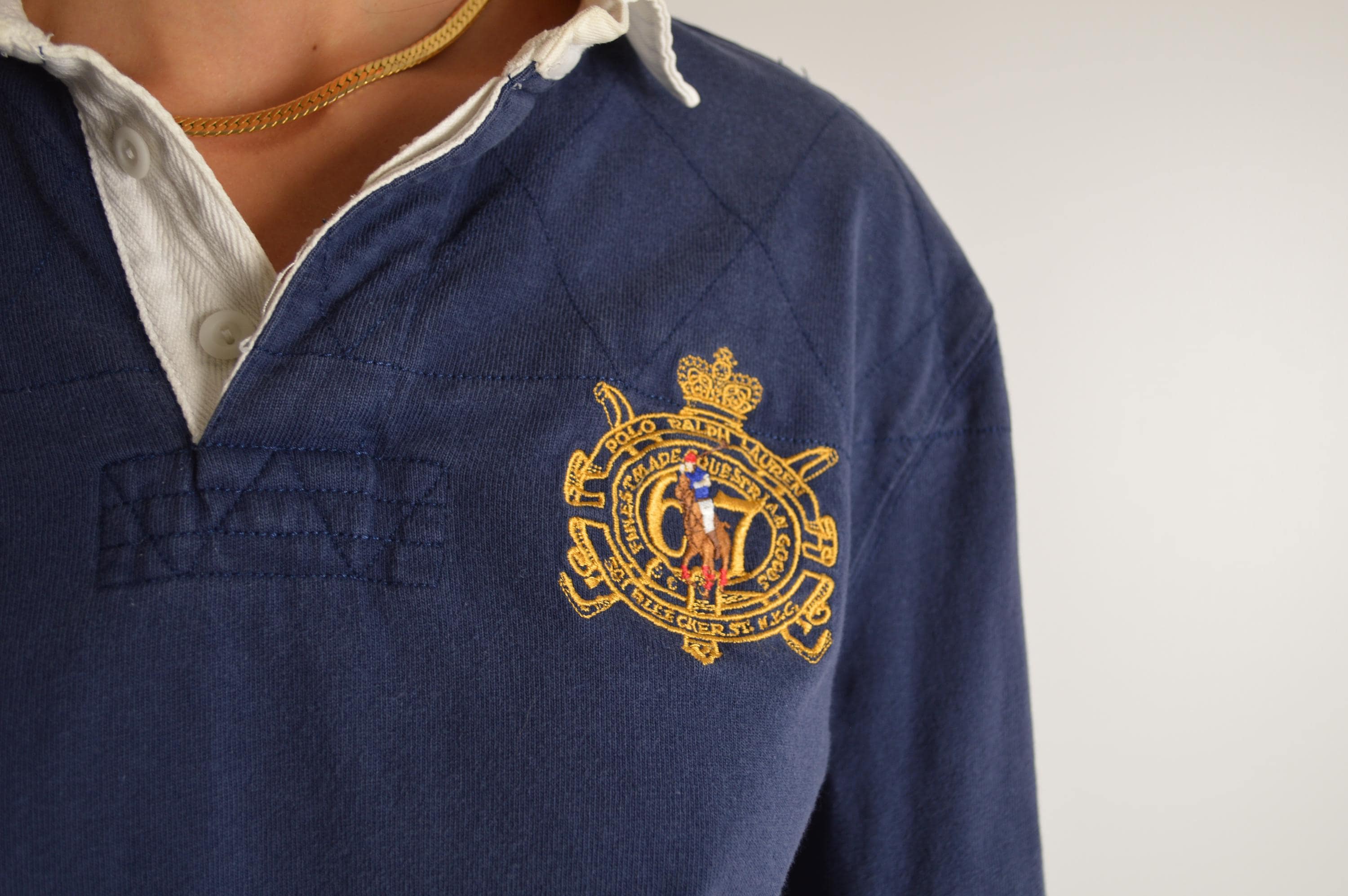 Amazing vintage Polo by Ralph Lauren 100% cotton henley. Faded navy blue with the iconic embroidered polo crest. Perfectly worn-in look and preppy, old money vibe