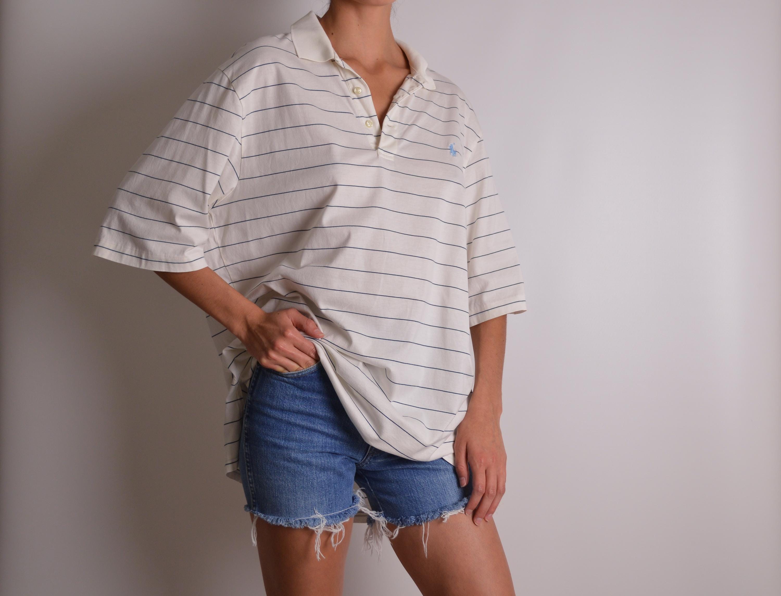 Vintage Polo by Ralph Lauren striped henley shirt. 100% Pima cotton. Oversized, long fit. Preppy boyfriend vibes