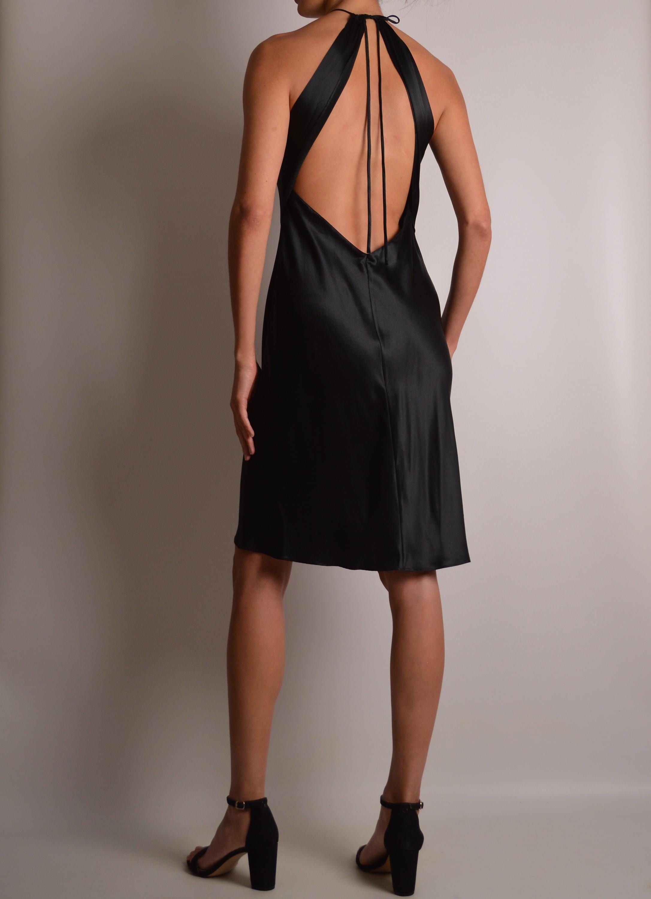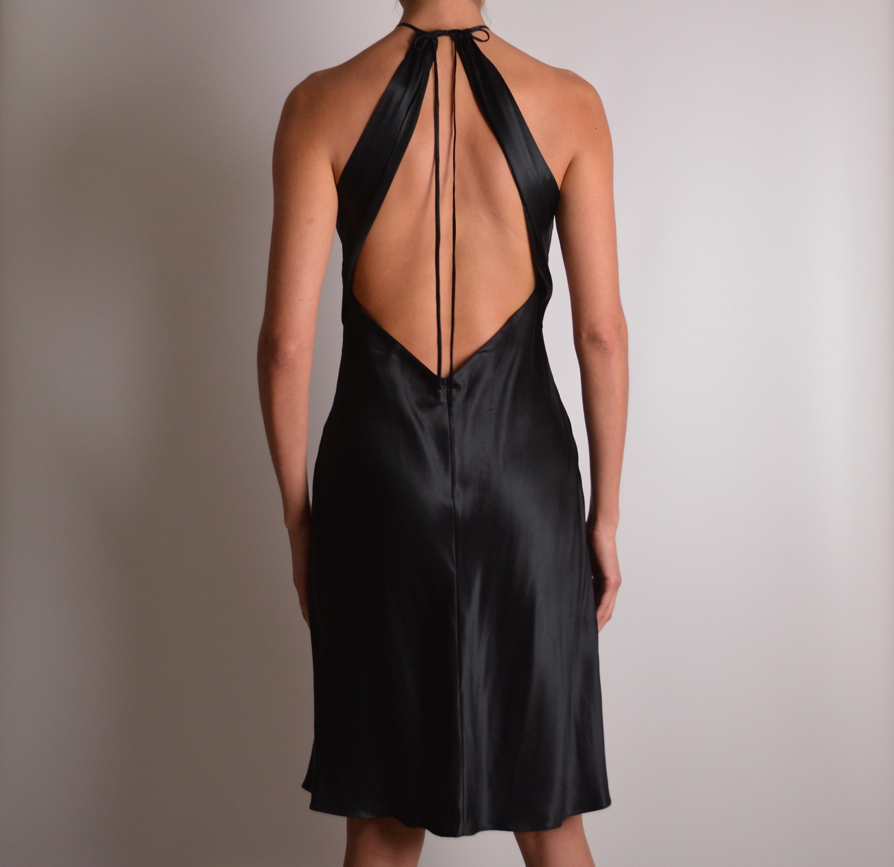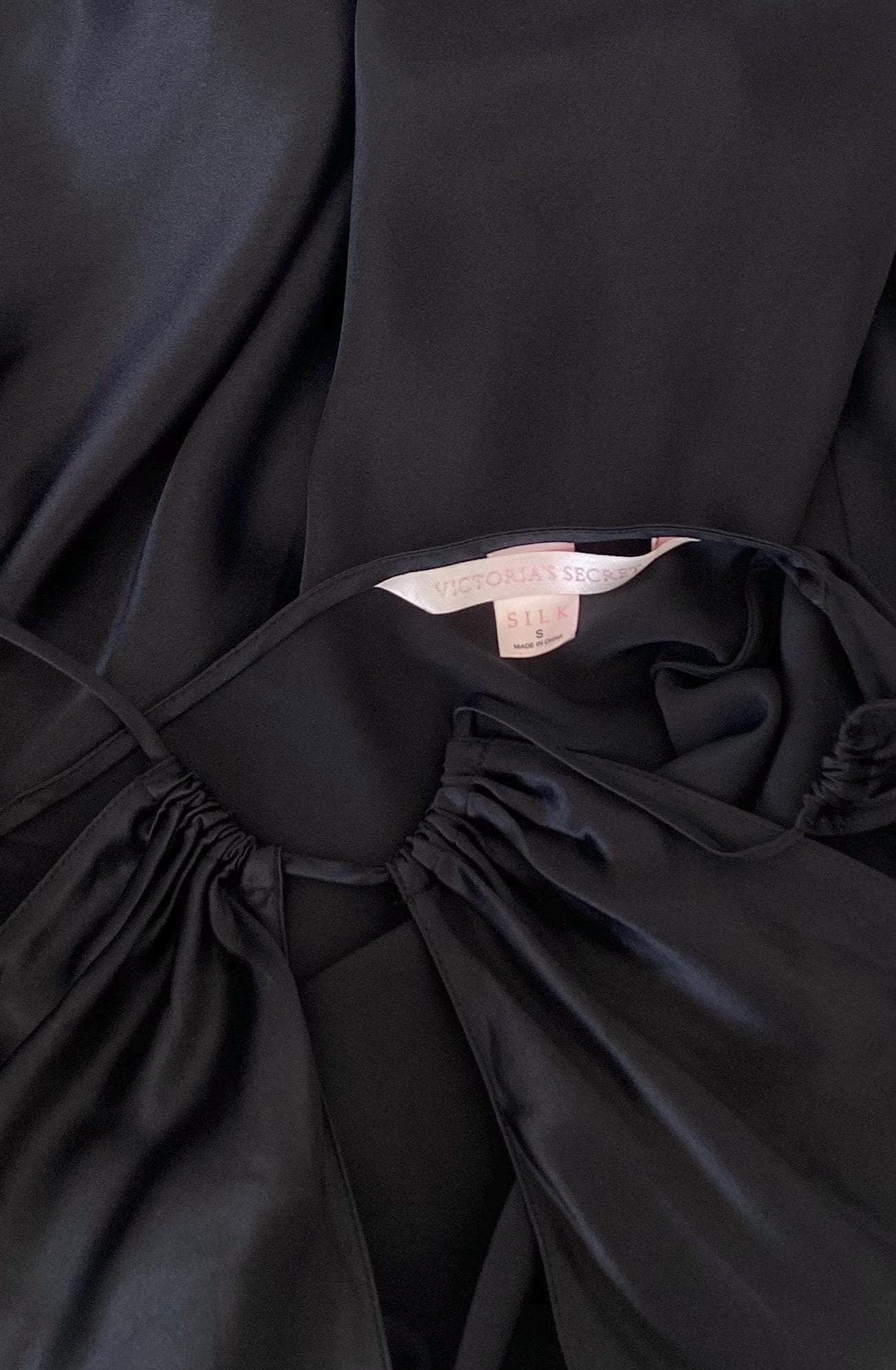 Stunning vintage Victoria's Secret (pink label), black silk slip dress. Open back, tiny straps, super soft. High neckline with keyhole detail. Perfect classy length. So delicate and feminine