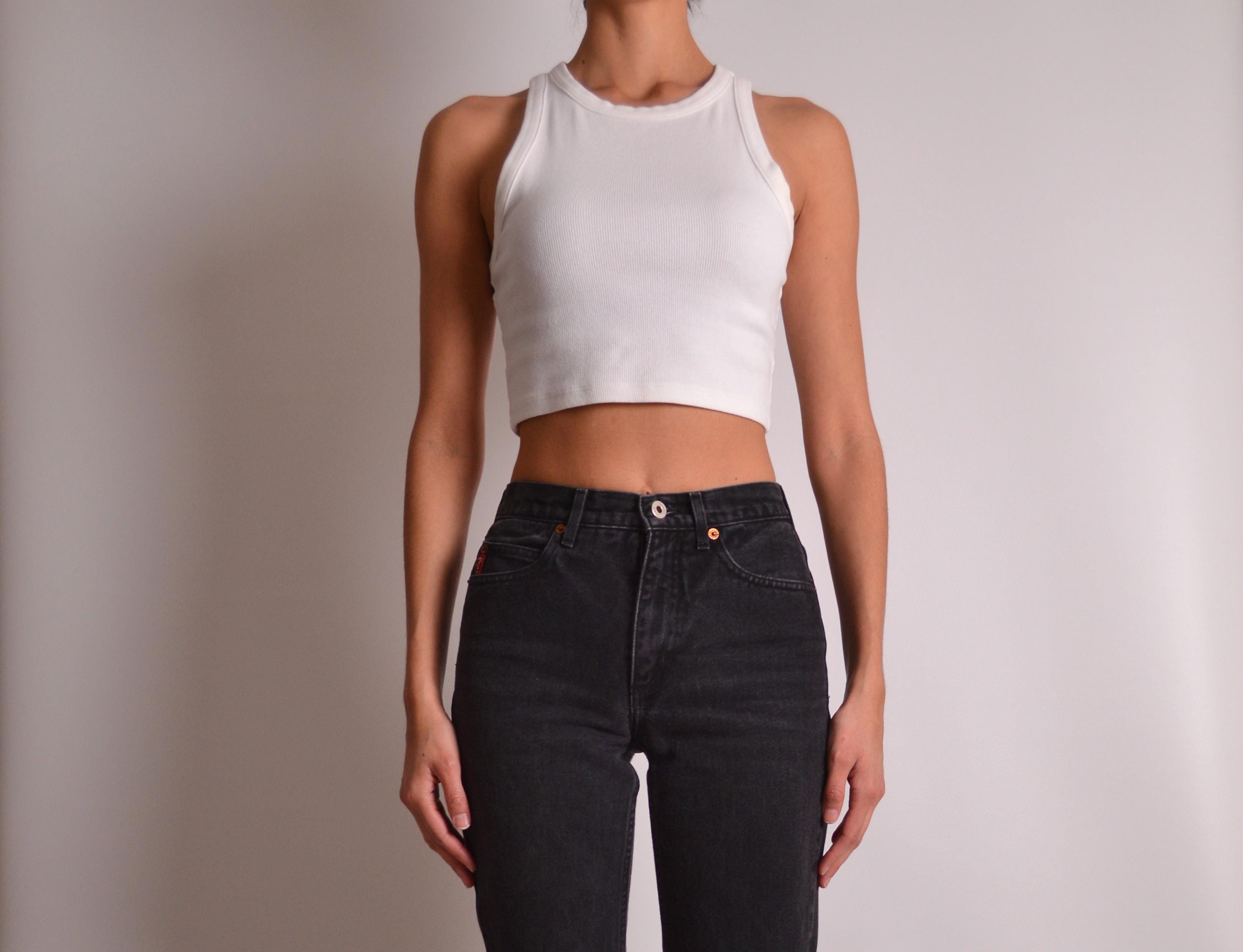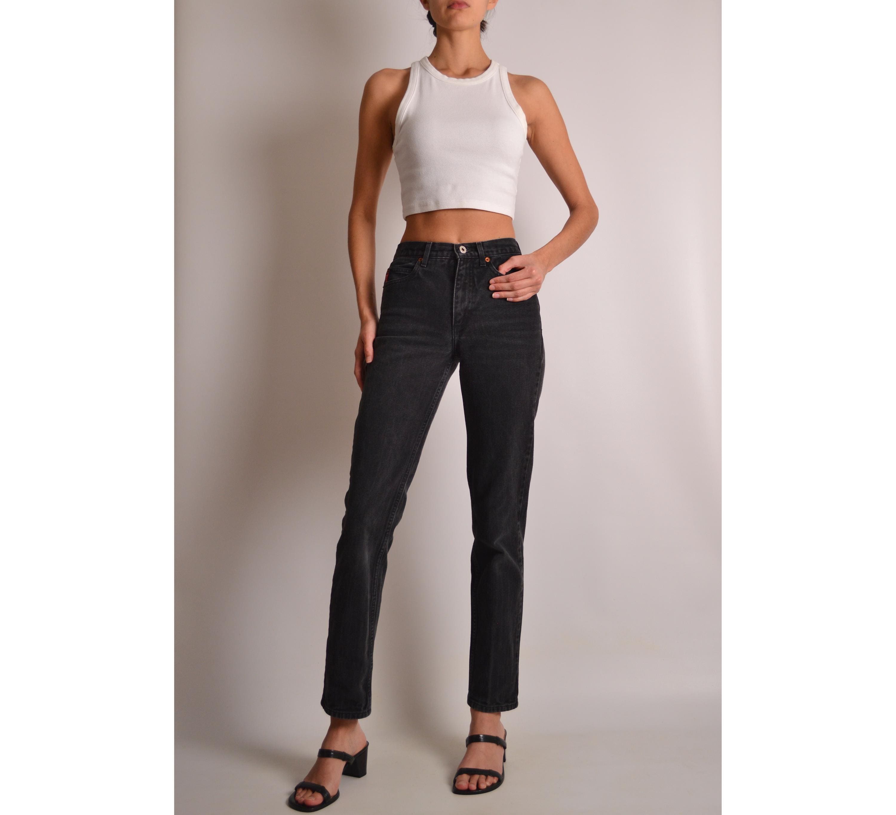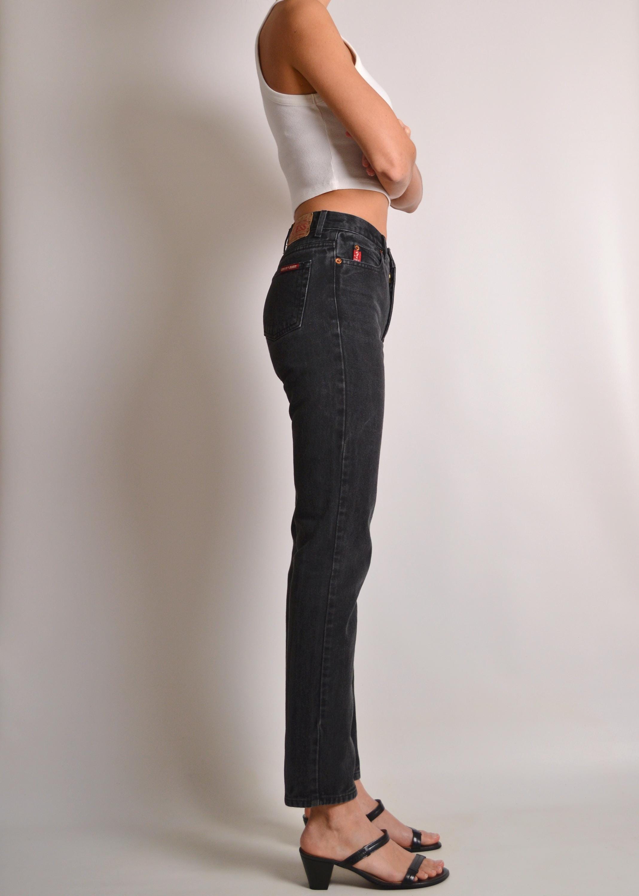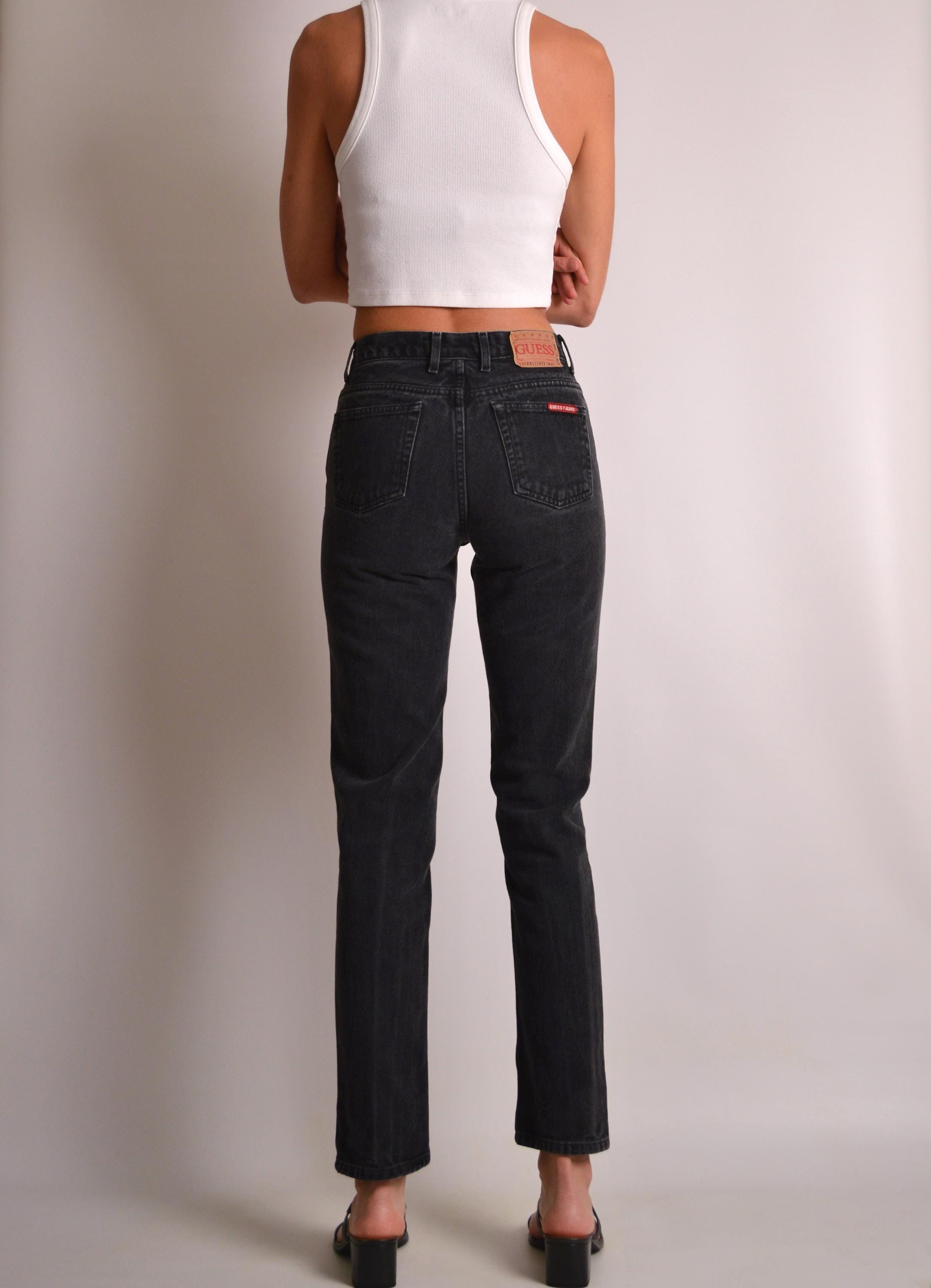 Vintage Guess, perfectly faded black jeans. Mid-rise and tapered leg with an amazing fit.
