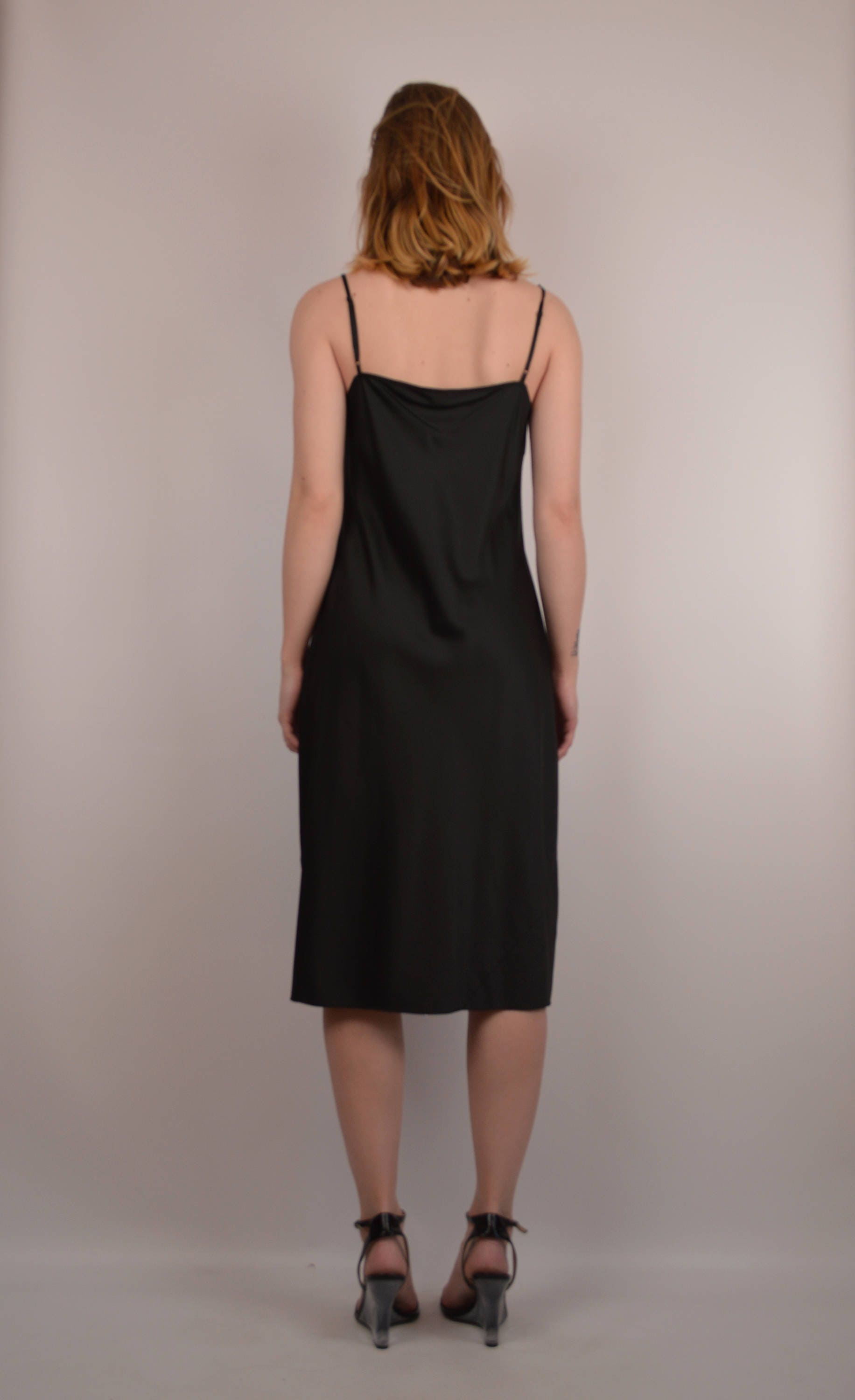 Beautiful black silk bias cut slip dress. Adjustable straps. Minimalist chic
