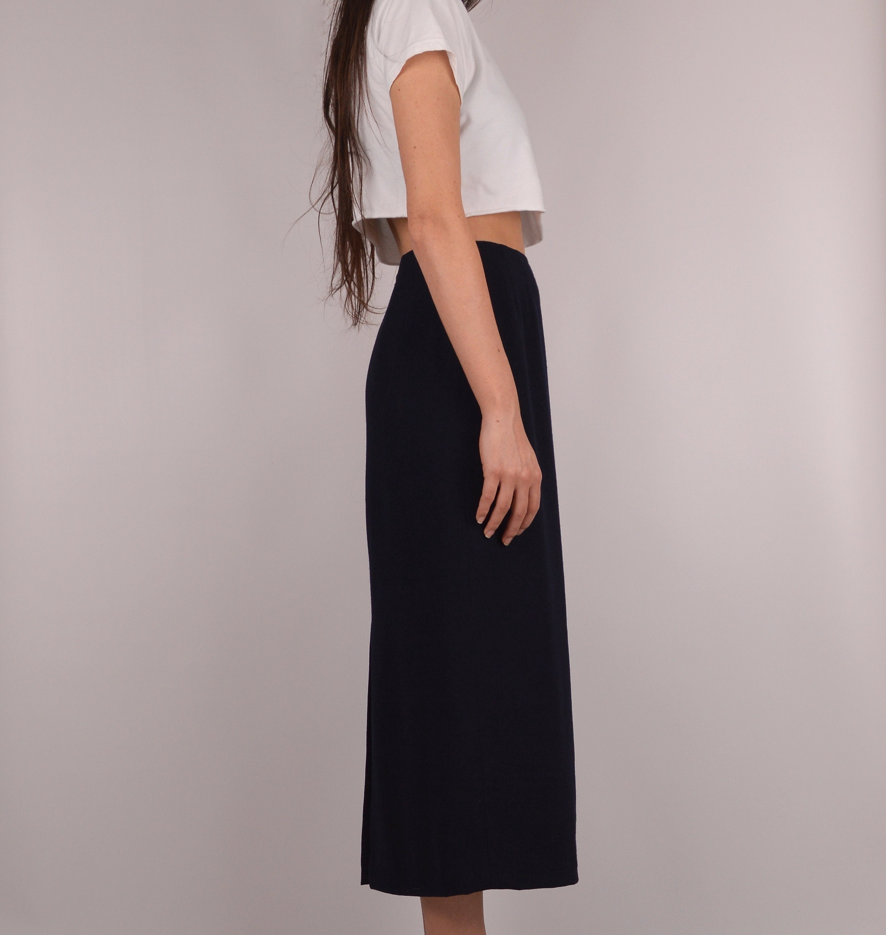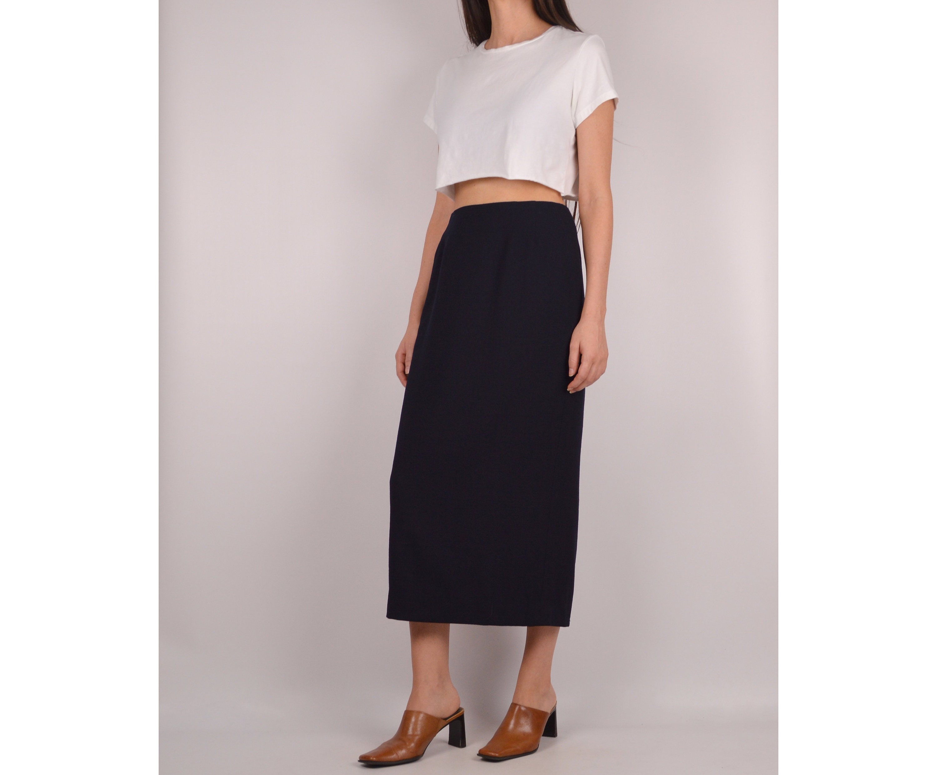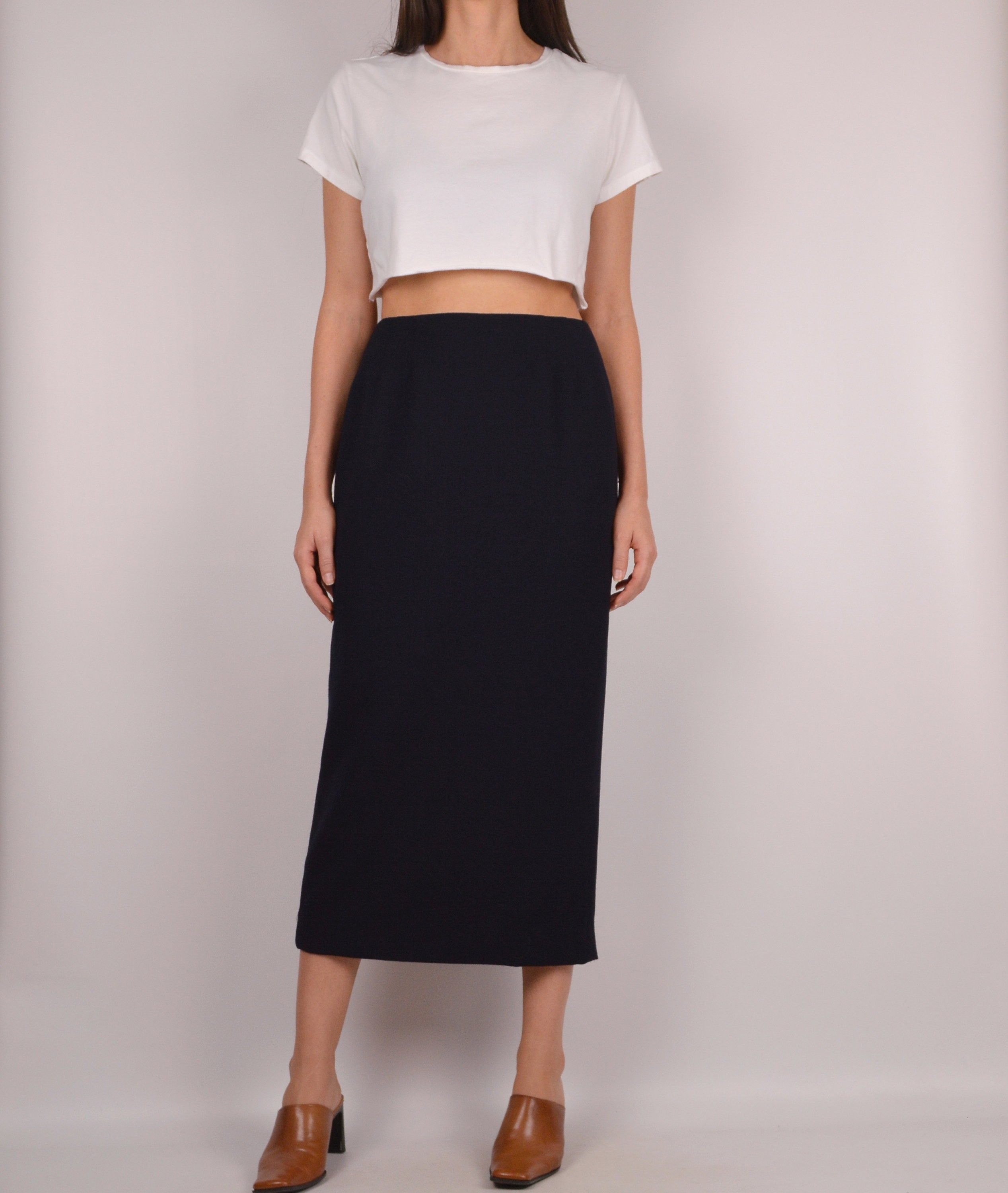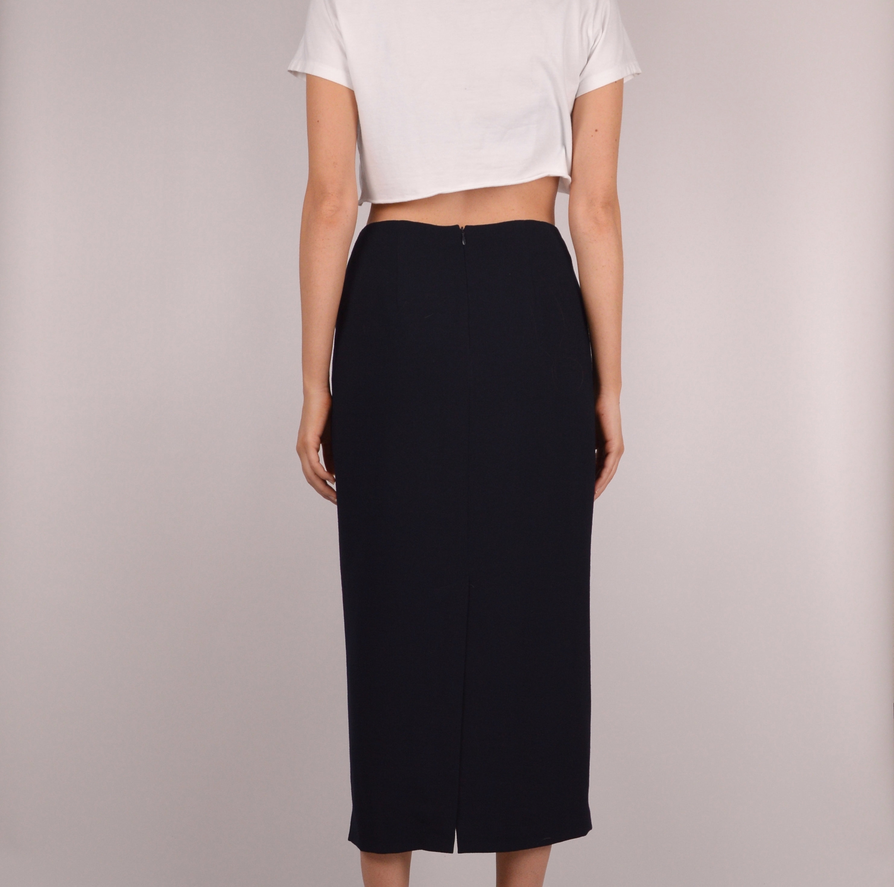 Vintage black wool pencil skirt. High waist, hidden zipper and walking slit in back, fully lined. Minimalist vibe