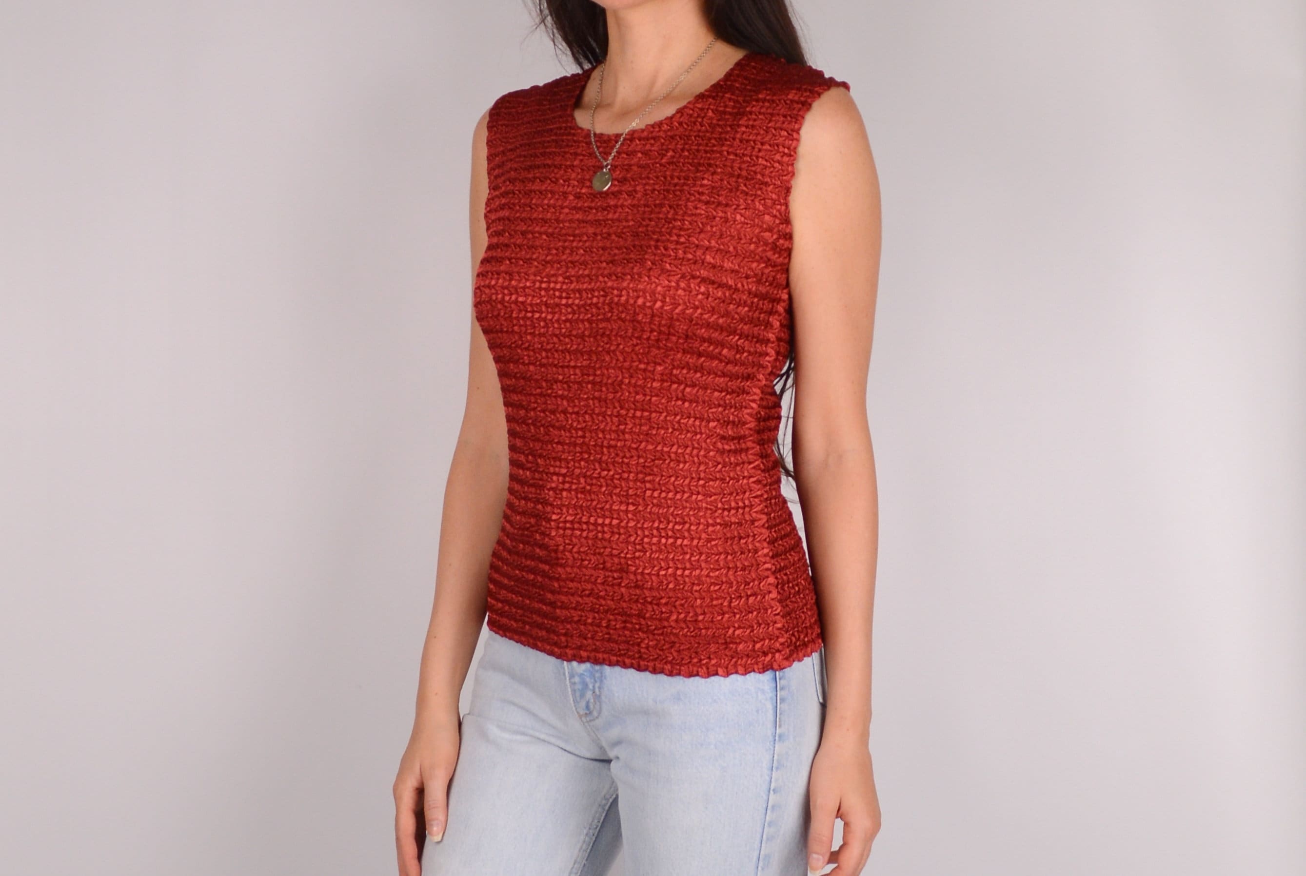 Gorgeous vintage rust color textured top. Fabric has a subtle sheen that catches the light beautifully. Ultra lightweight with plenty of stretch makes it super comfortable