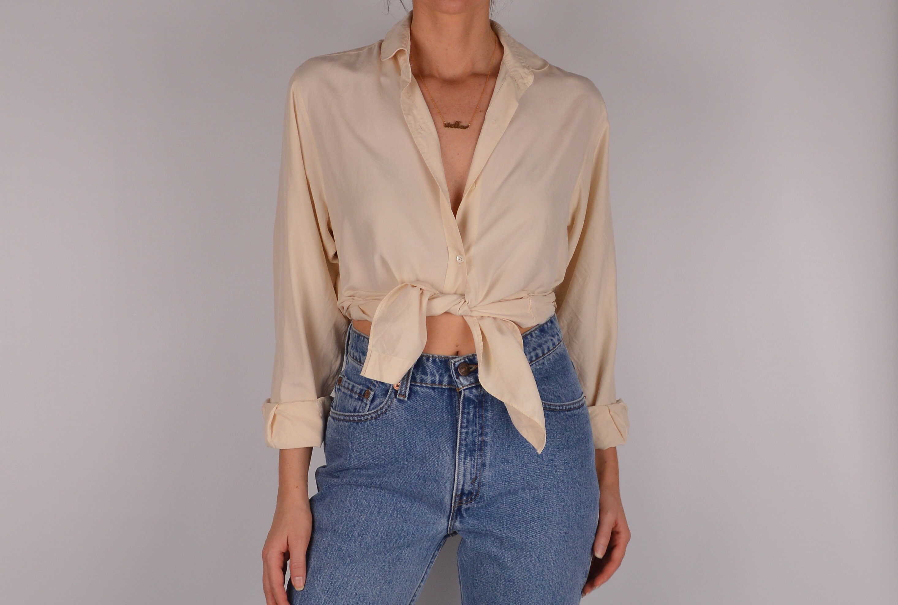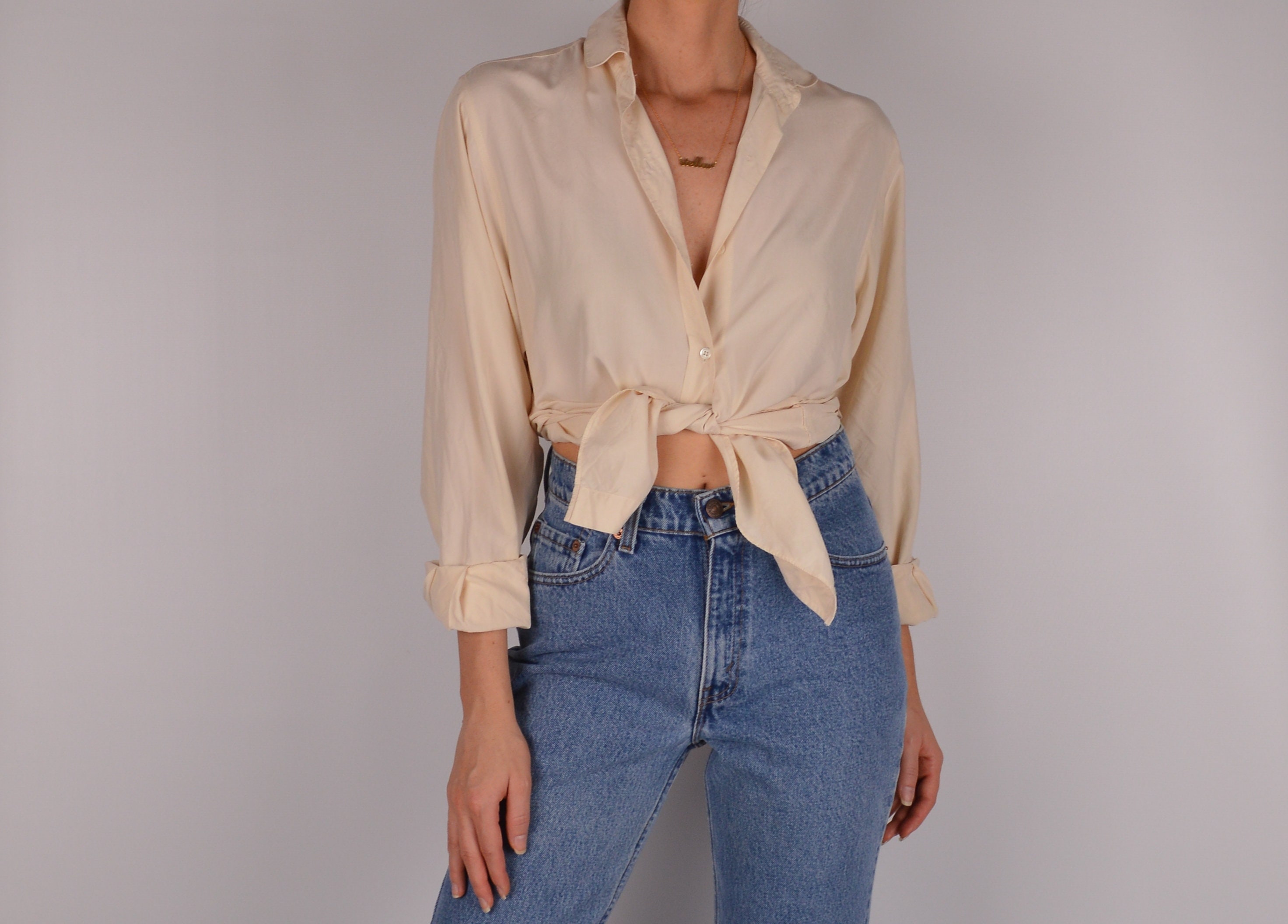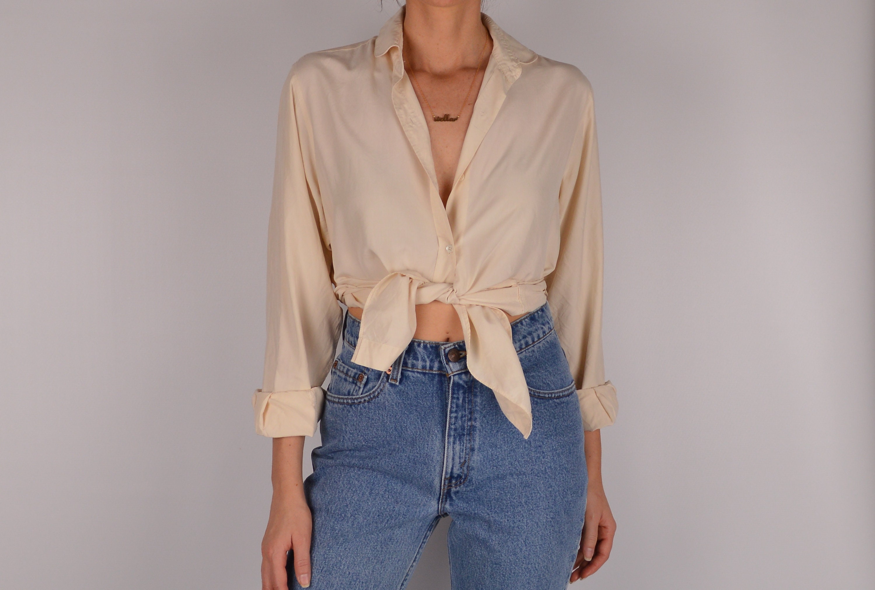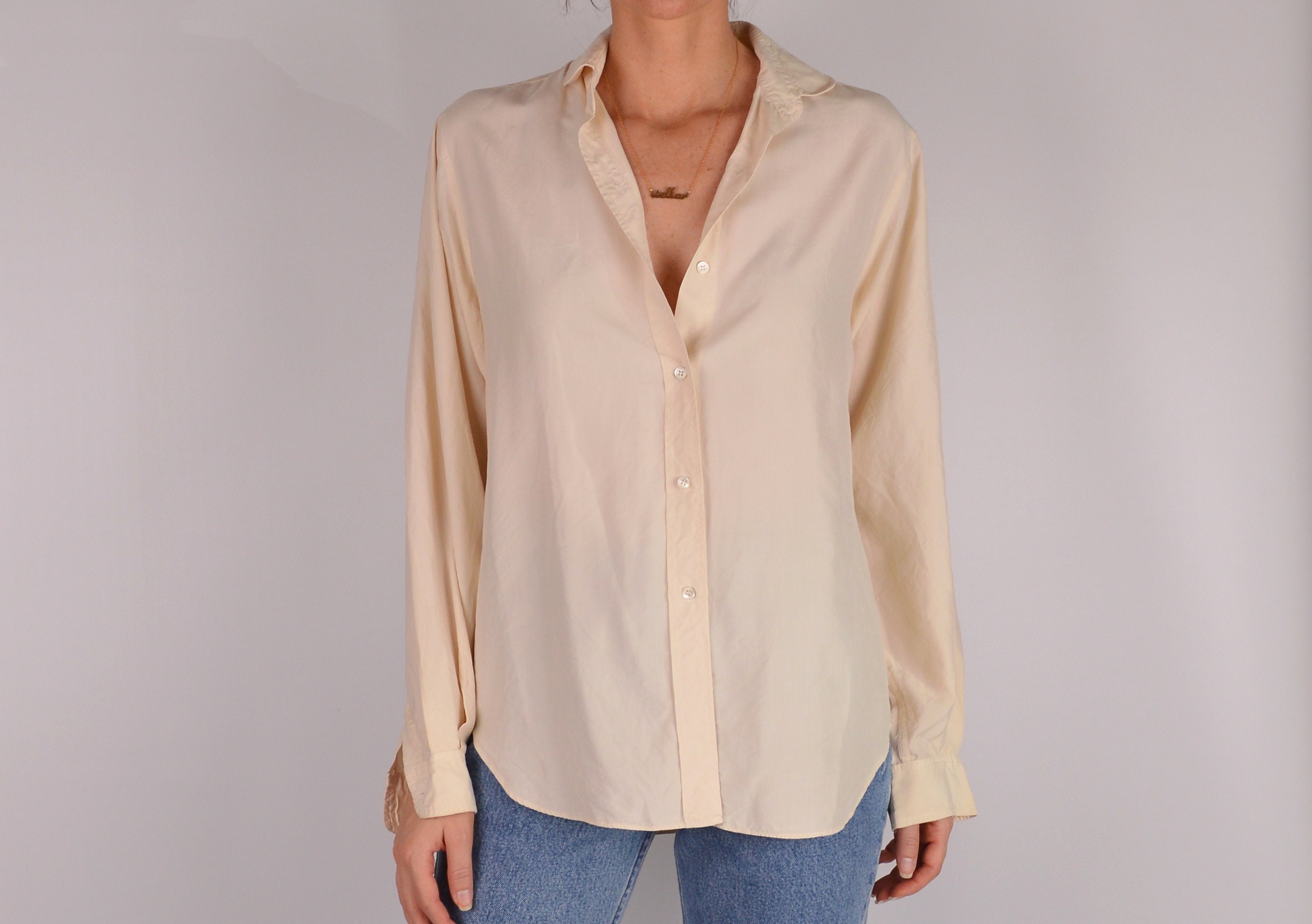 Lovliest vintage cream silk button-up blouse. So soft and beautiful