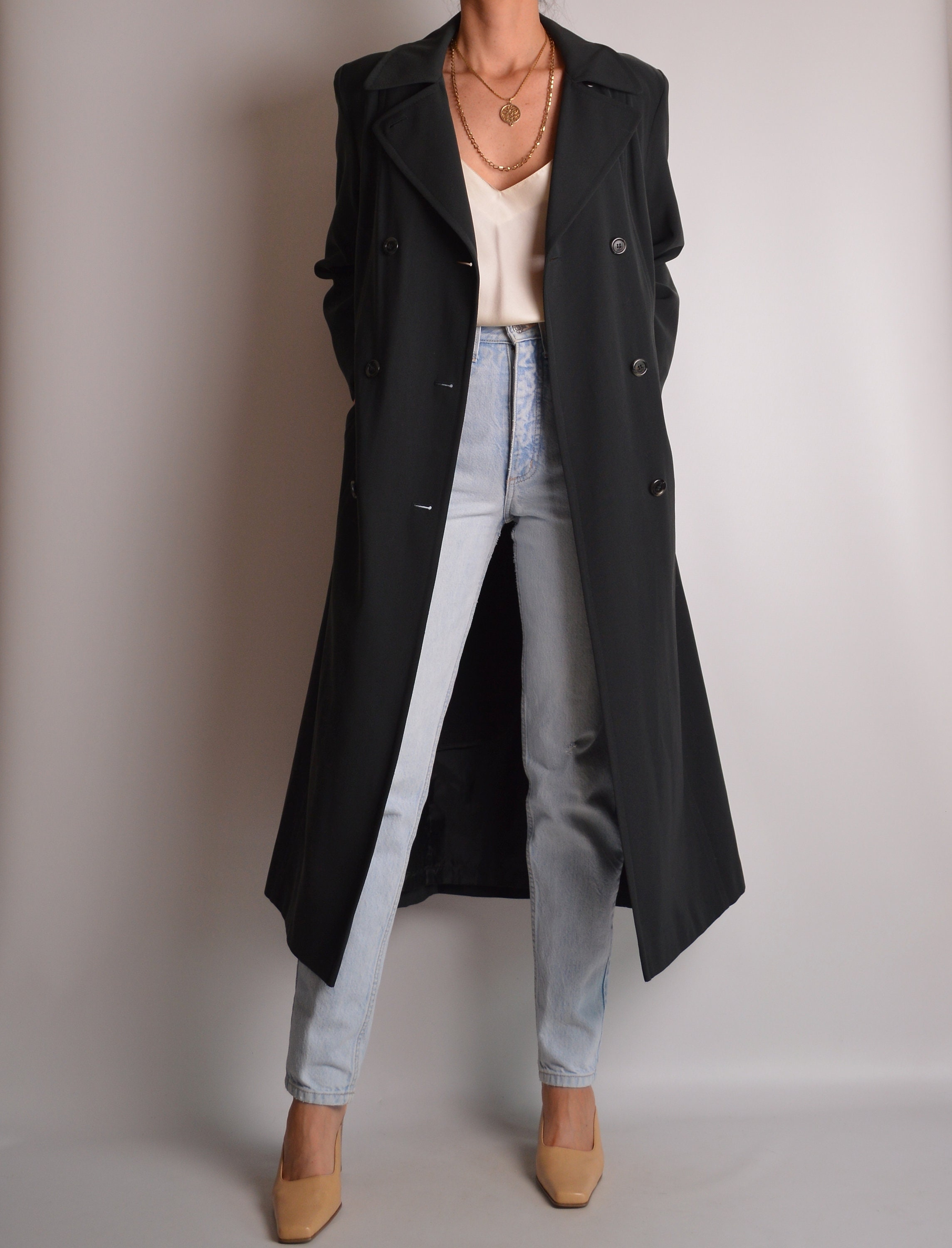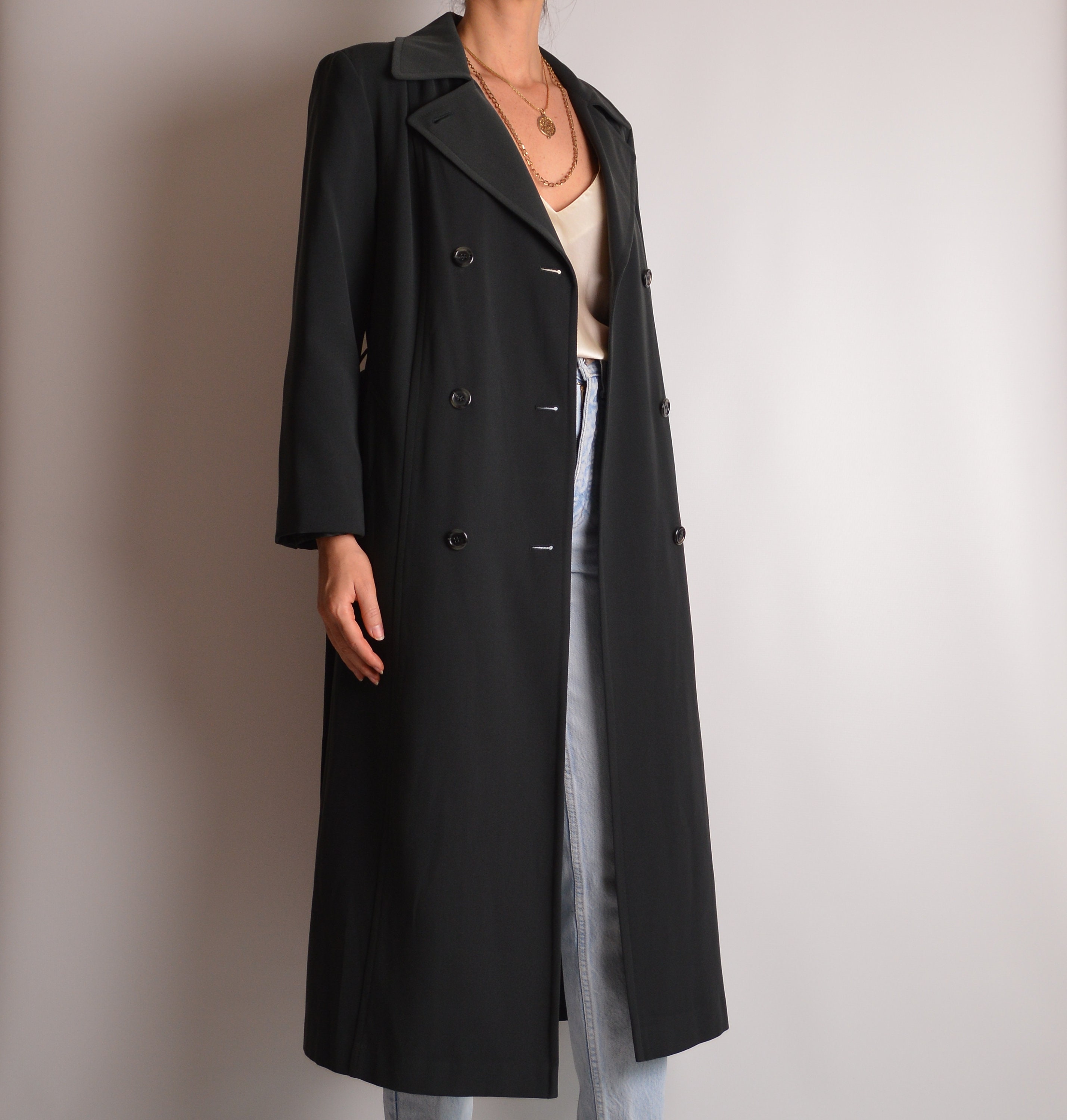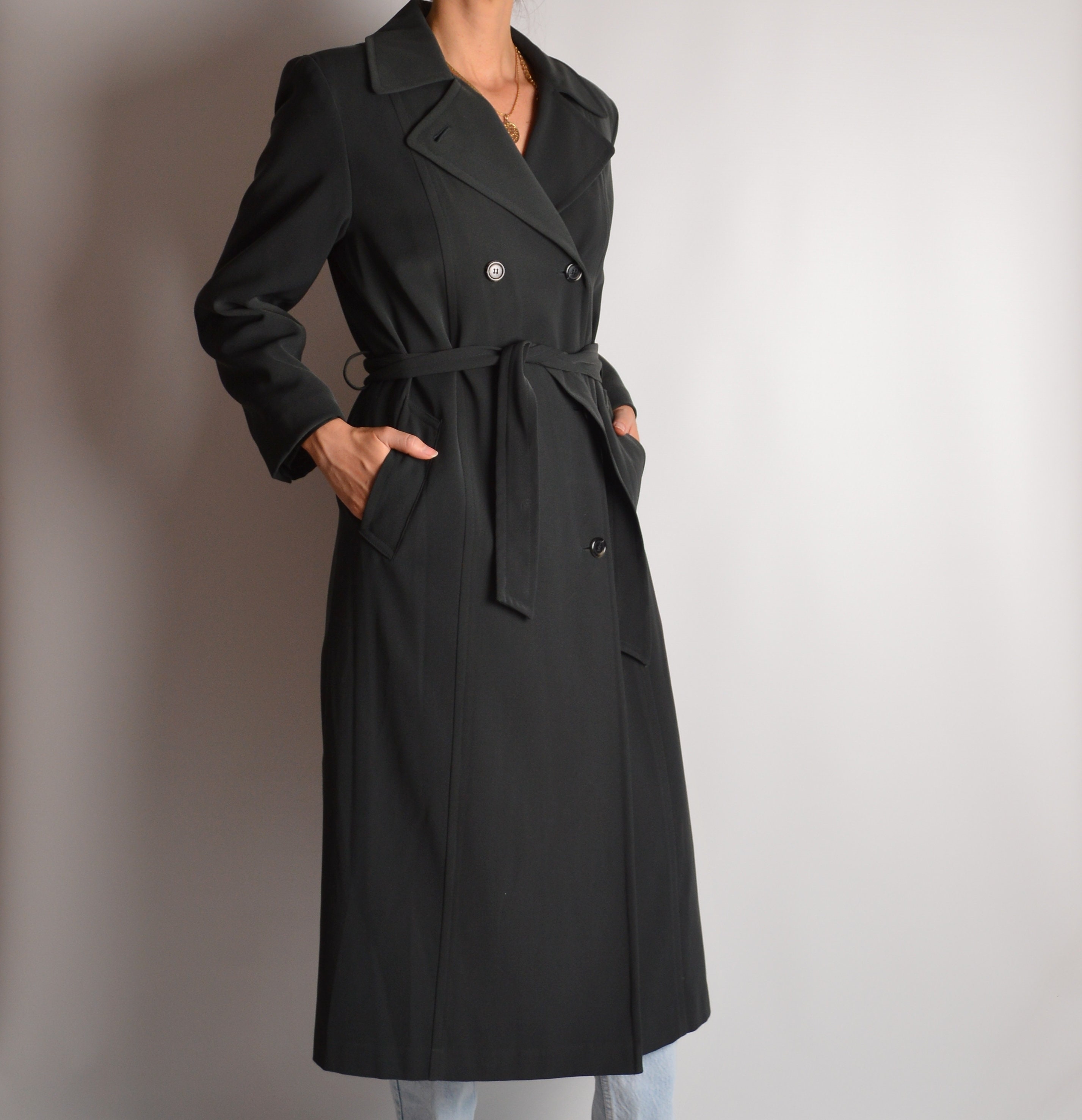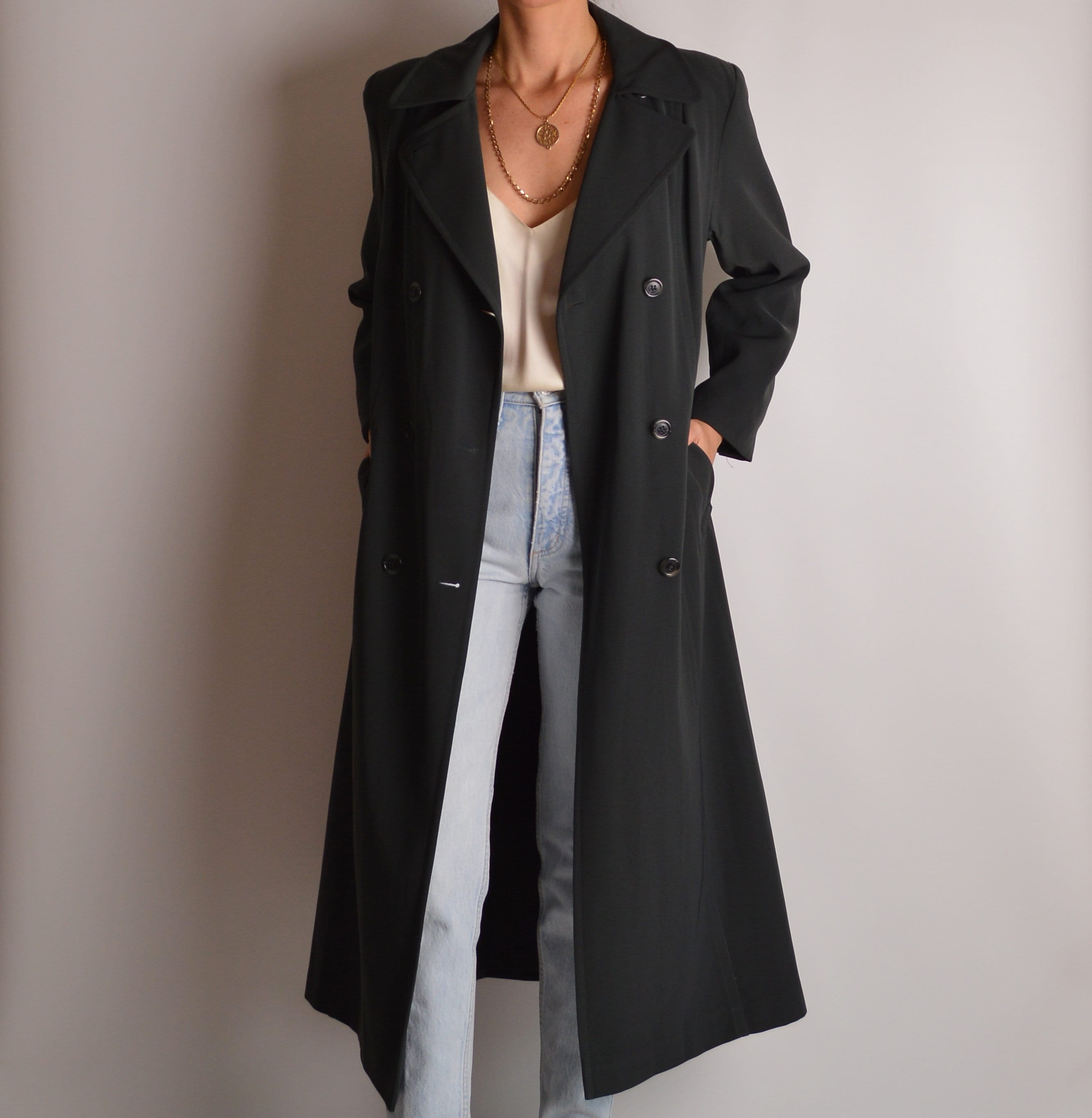 Gorgeous vintage gray trench coat. Has pockets, overlapped button closure, and tie belt. Long length is great for chilly weather. Fully lined plus it has an additional thick liner that can be easily removed for milder weather. So perfect